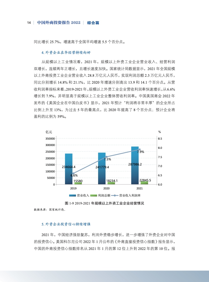 230 家国家级经济技术开发区实际使用外资同比增长 25.7%,增 速高于全国平均增速 5.5 个百分点,为稳外资做出了积极贡献。四是外资企业在华经 营持续向好,规模以上外资工业企业营业收入、经营利润连续两年正增长,且增长速 度加快,进一步增强了外资企业在华投资信心。