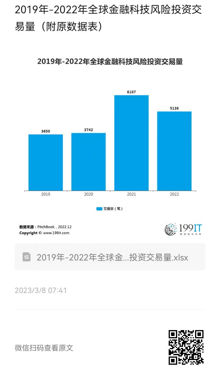 2019年-2022年全球金融科技风险投资交易量(附原数据表) ​​​