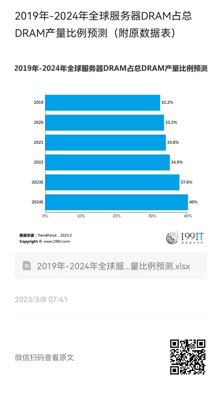 2019年-2024年全球服务器DRAM占总DRAM产量比例预测(附原数据表) ​​​