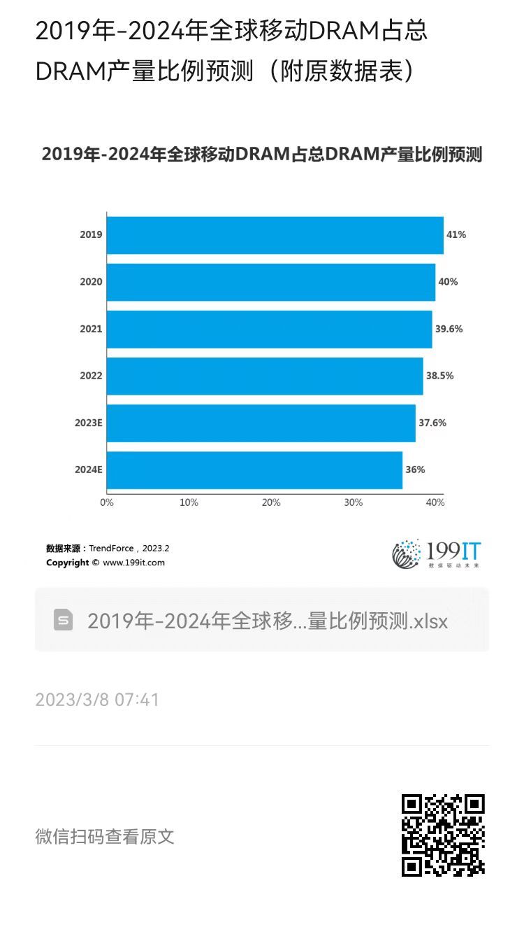 2019年-2024年全球移动DRAM占总DRAM产量比例预测(附原数据表) ​​​