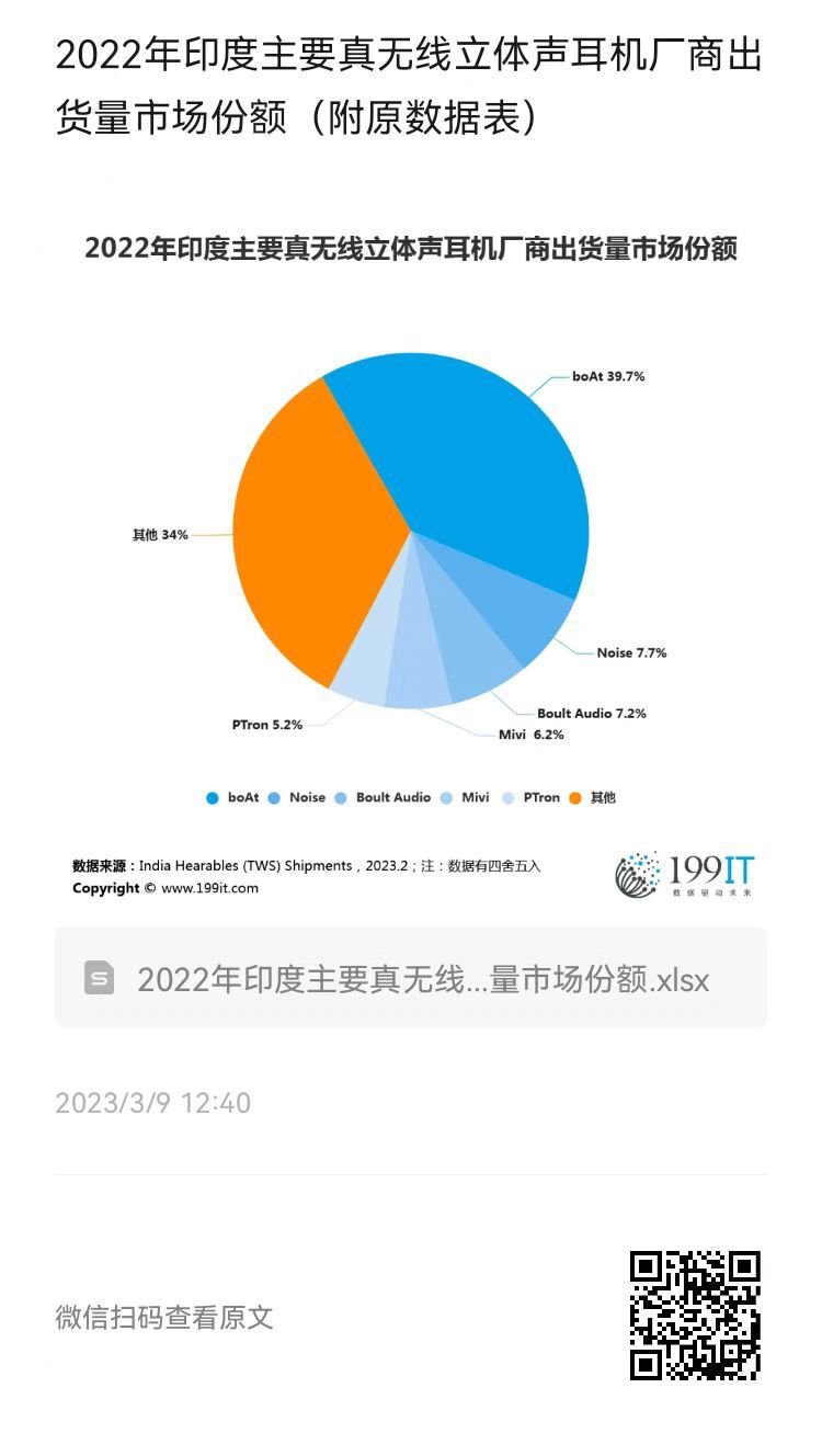 - 2022年Q4印度主要真无线立体声耳机厂商出货量市场份额(附原数据表)