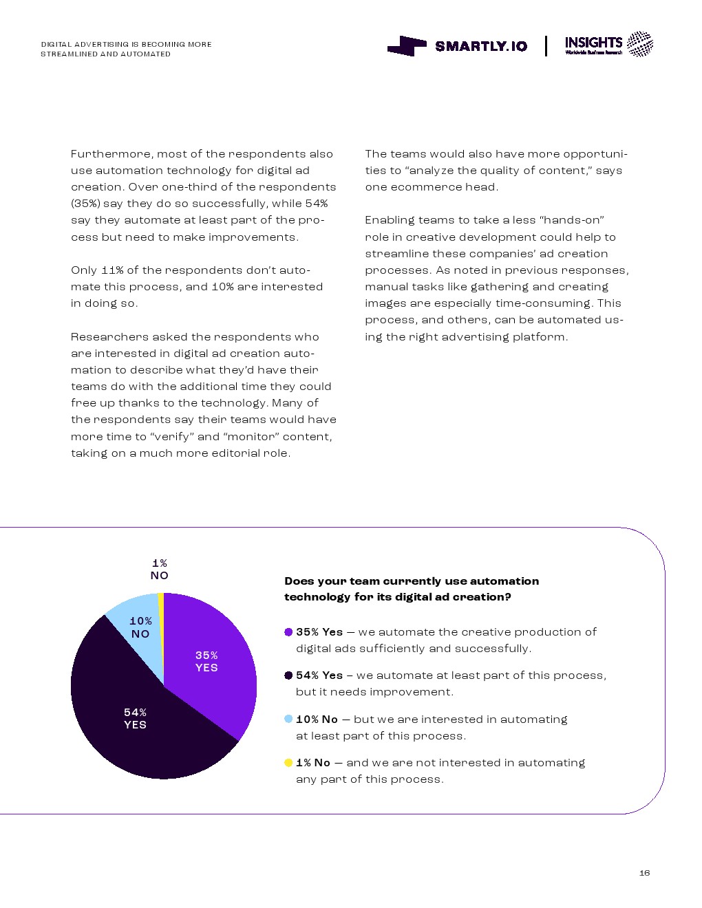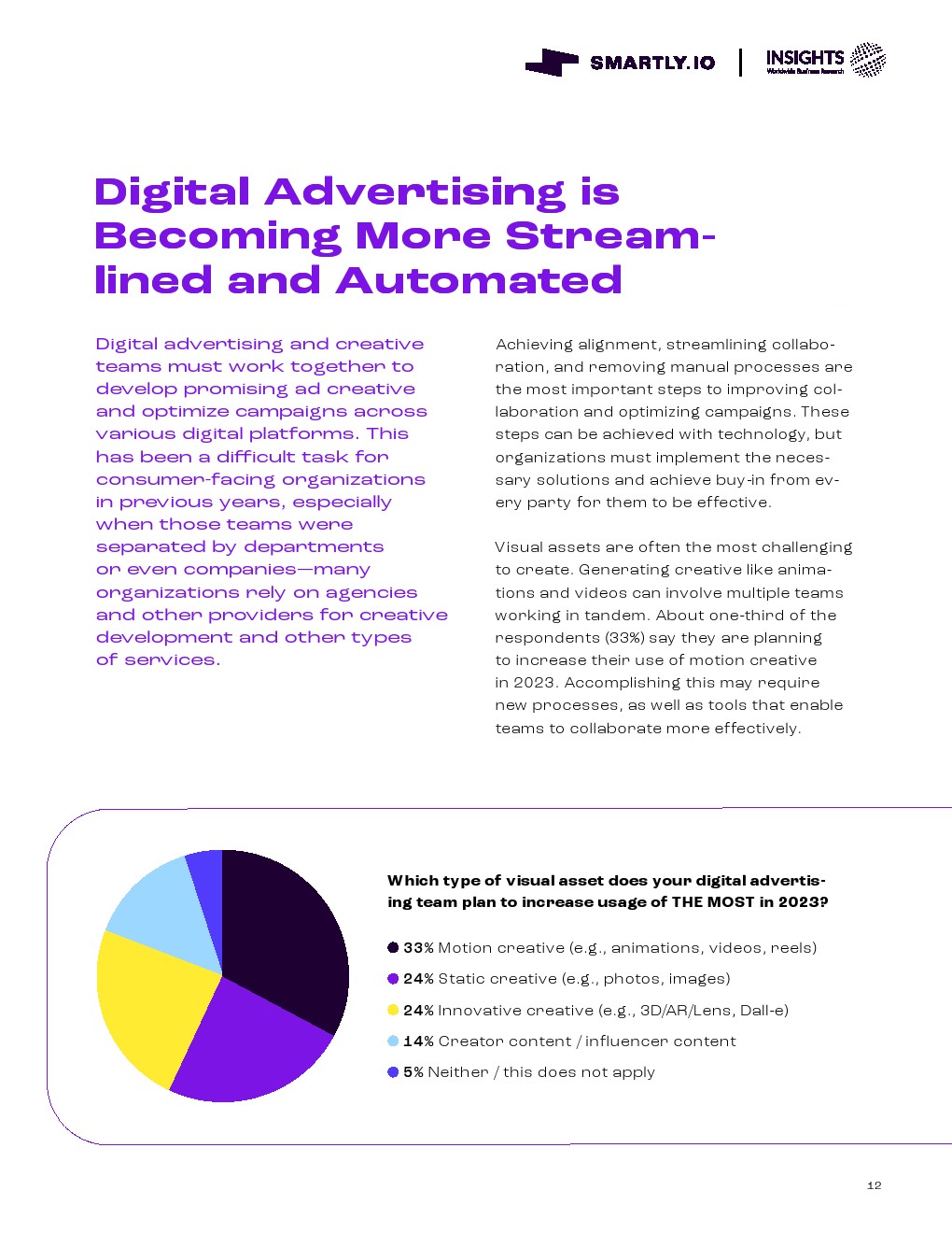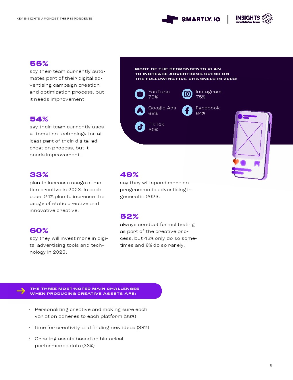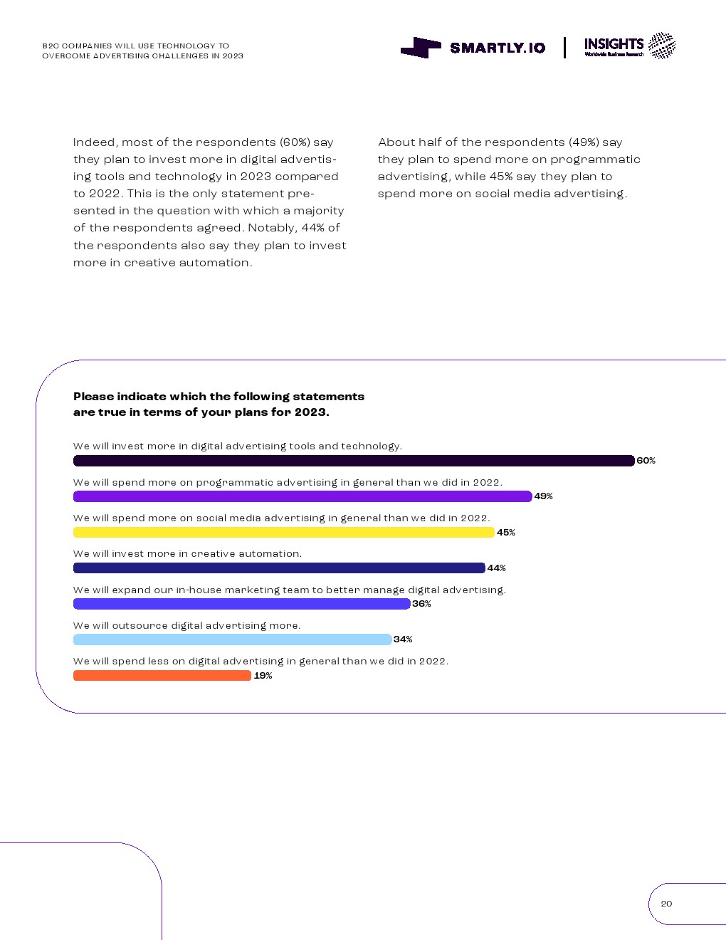 总而言之,6/10的受访者同意他们今年将更多地投资于数字广告工具和技术;44% 的人将更多地投资于创意自动化。