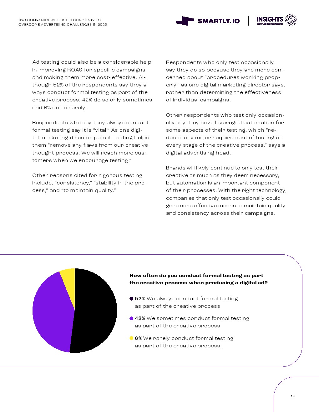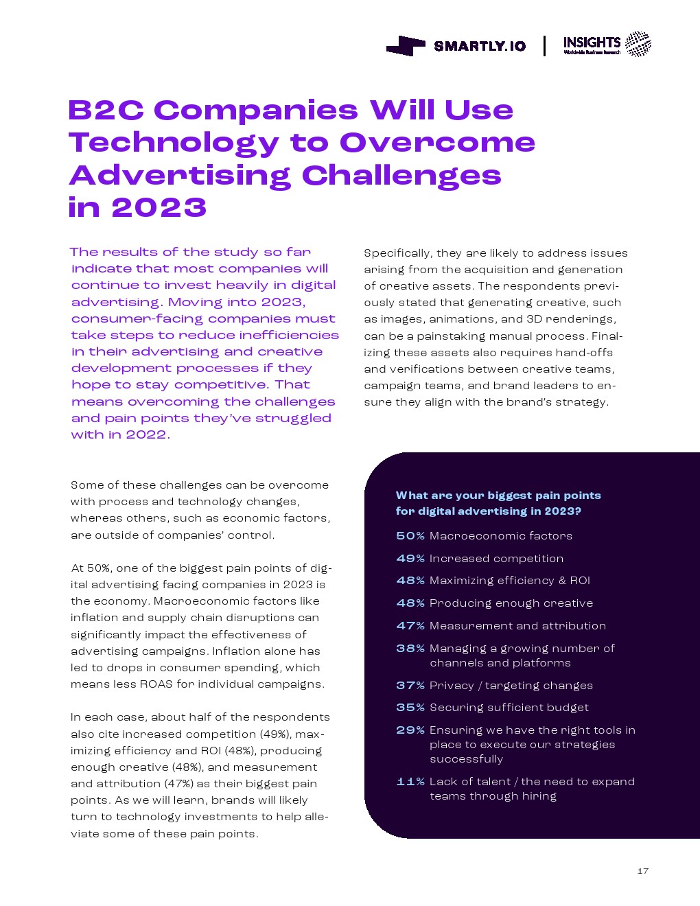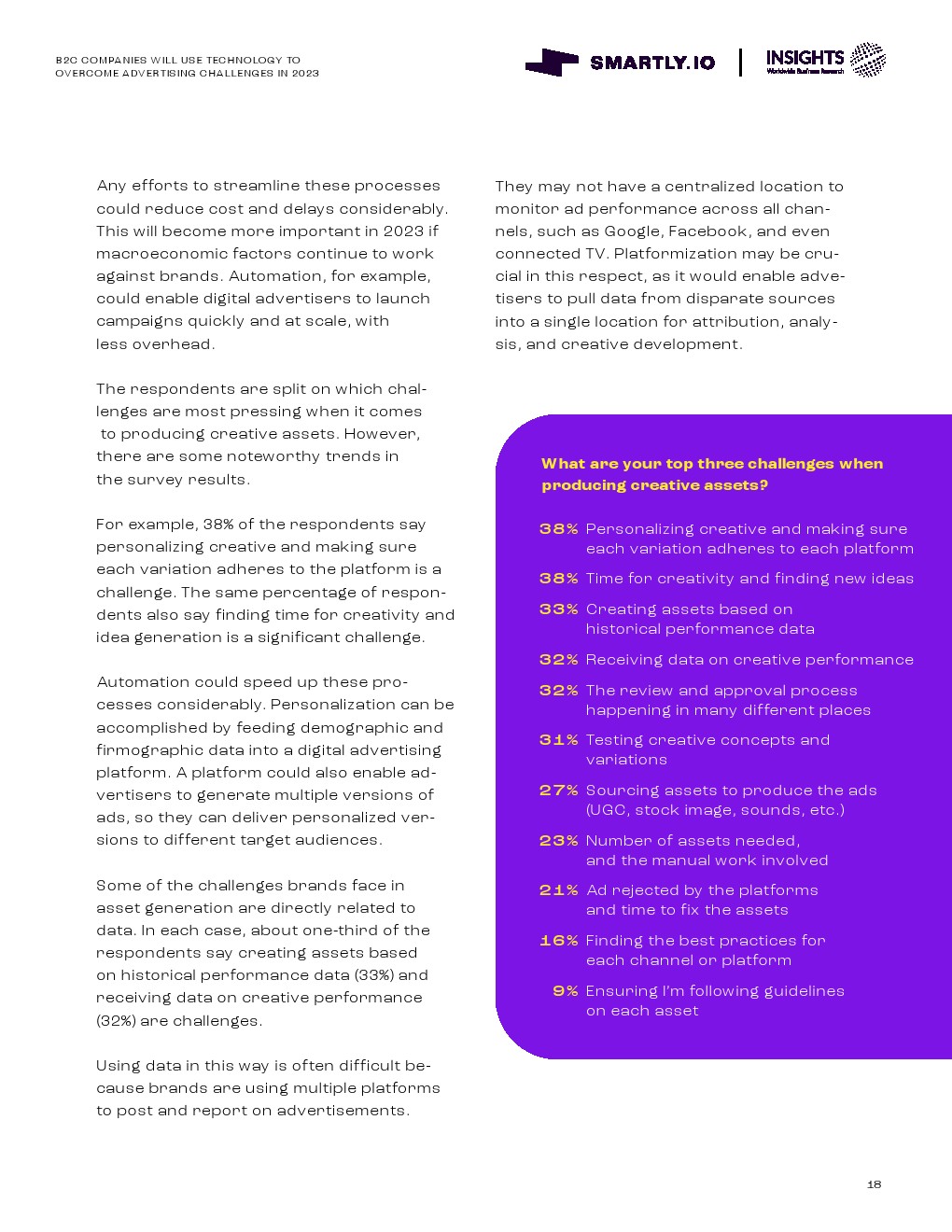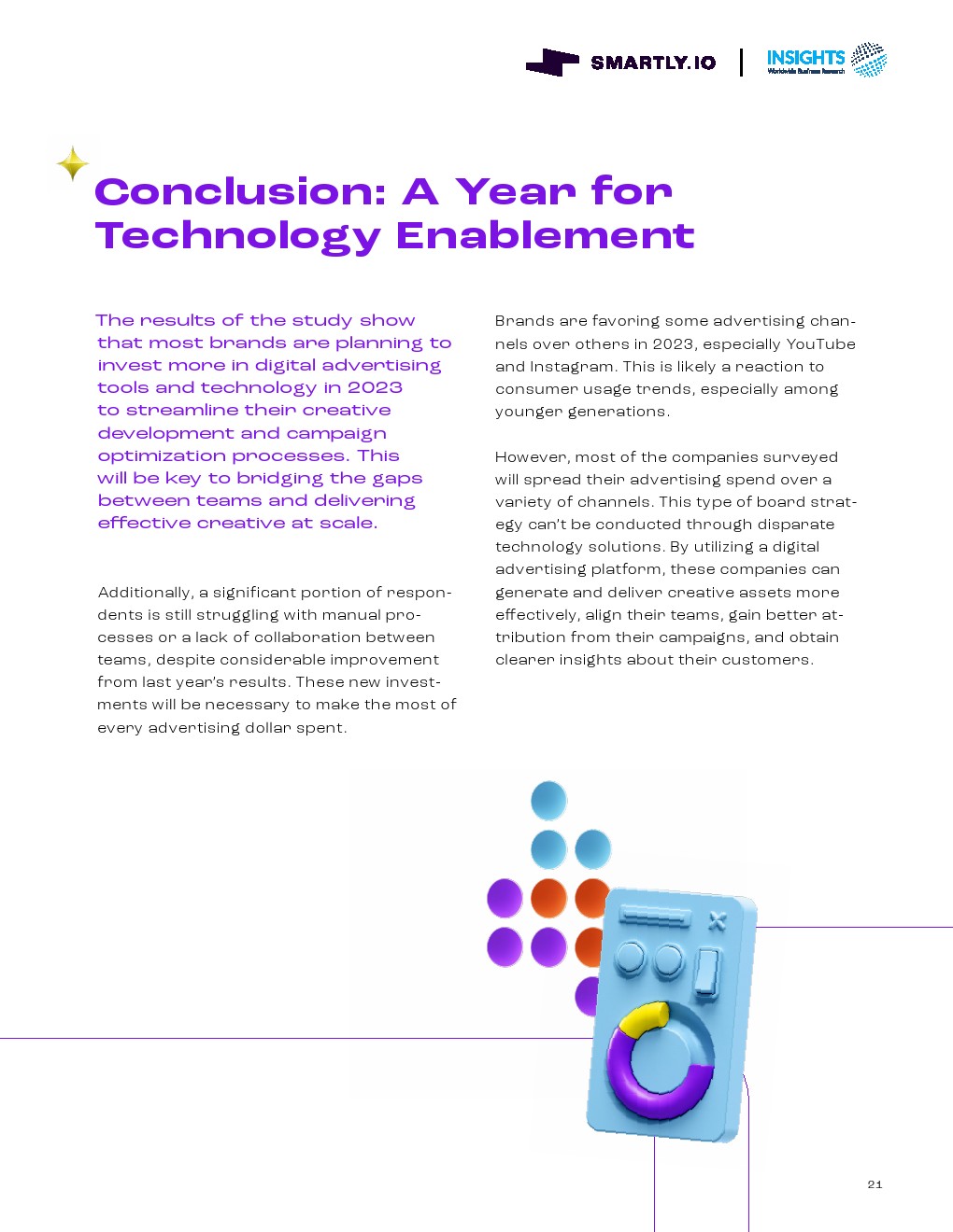 总而言之,6/10的受访者同意他们今年将更多地投资于数字广告工具和技术;44% 的人将更多地投资于创意自动化。