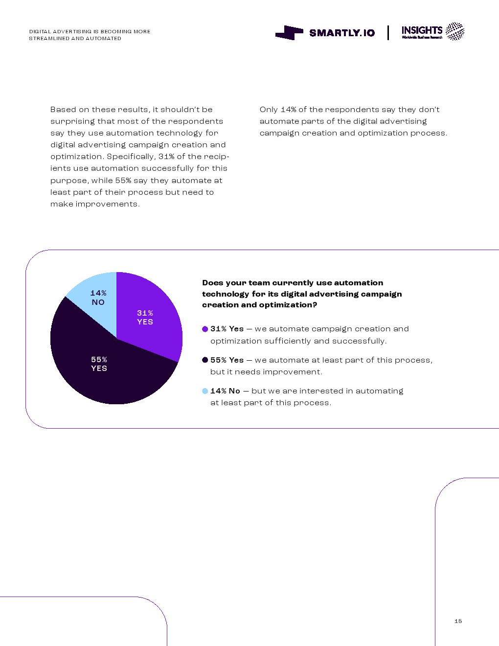 31%的受访者正在自动化创建和优化营销活动。另有 55% 的受访者正在将至少部分流程自动化,但也承认需要改进。