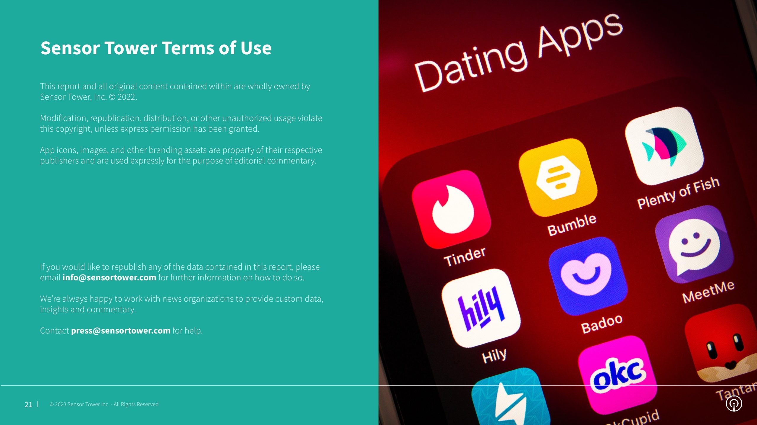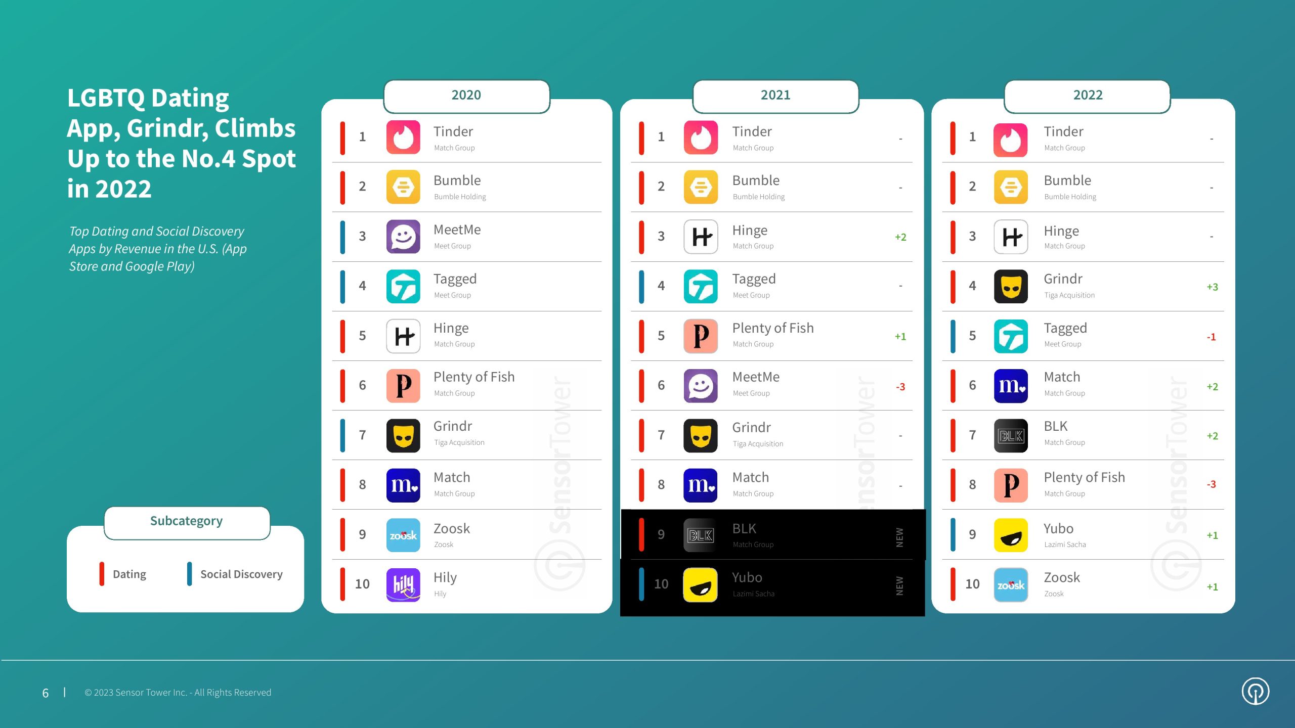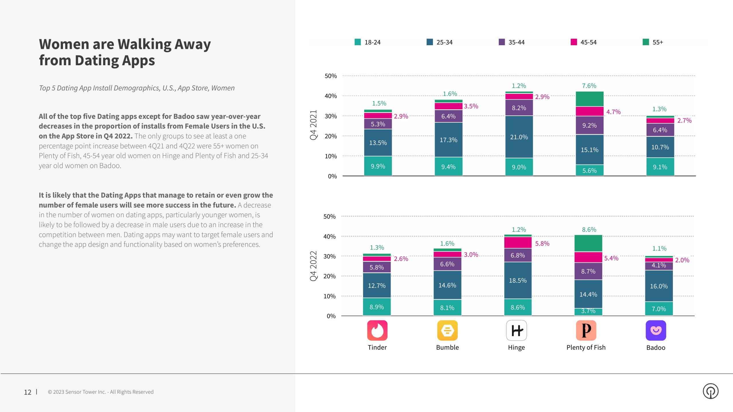 2022年第四季度,约会和社交发现应用的安装量为1890万次,同比下降11%。年度安装量为7730万,同比下降7%。