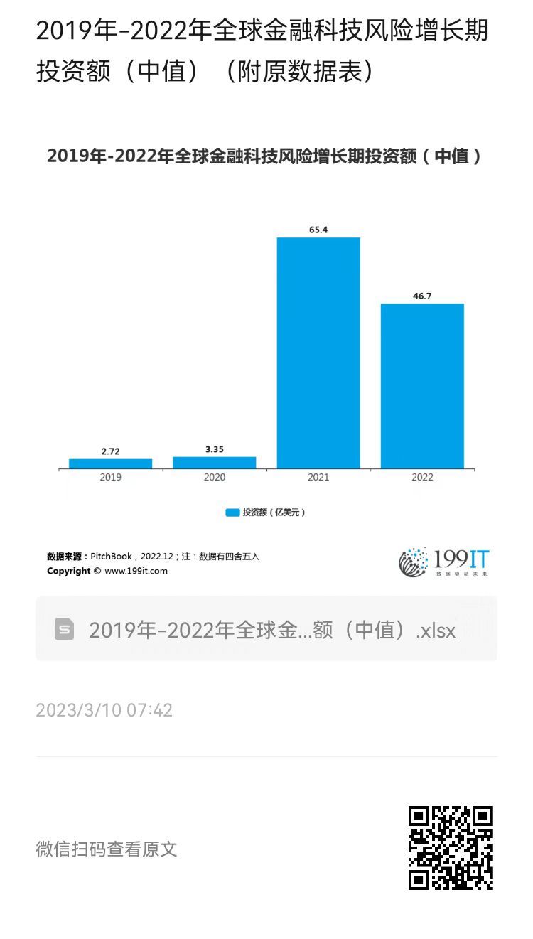 2019年-2022年全球金融科技风险增长期投资额(中值)(附原数据表) ​​​