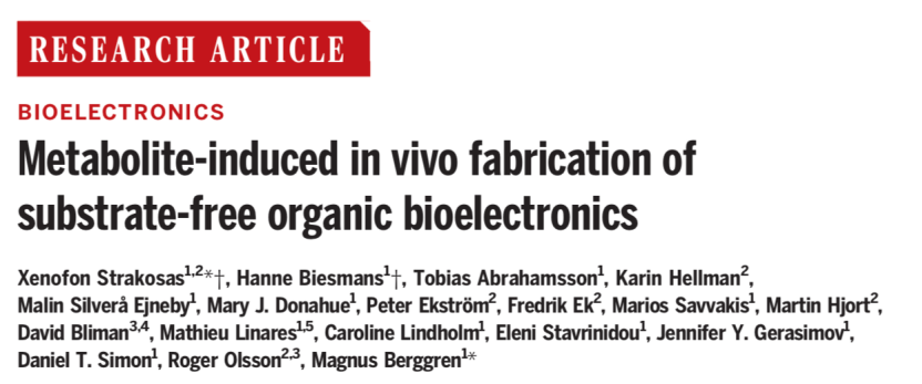 [2] Strakosas X, Biesmans H, Abrahamsson T, et al. Metabolite-induced in vivo fabrication of substrate-free organic bioelectronics. Science. 2023;379(6634):795-802. doi:10.1126/science.adc9998