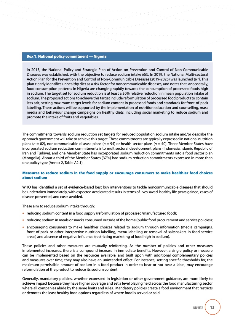 世界卫生组织(世卫组织)发布首份《全球减少钠摄入量报告》(《报告》),其中显示,世界无法按计划实现到2025年将人群钠摄入量减少30%的全球目标。