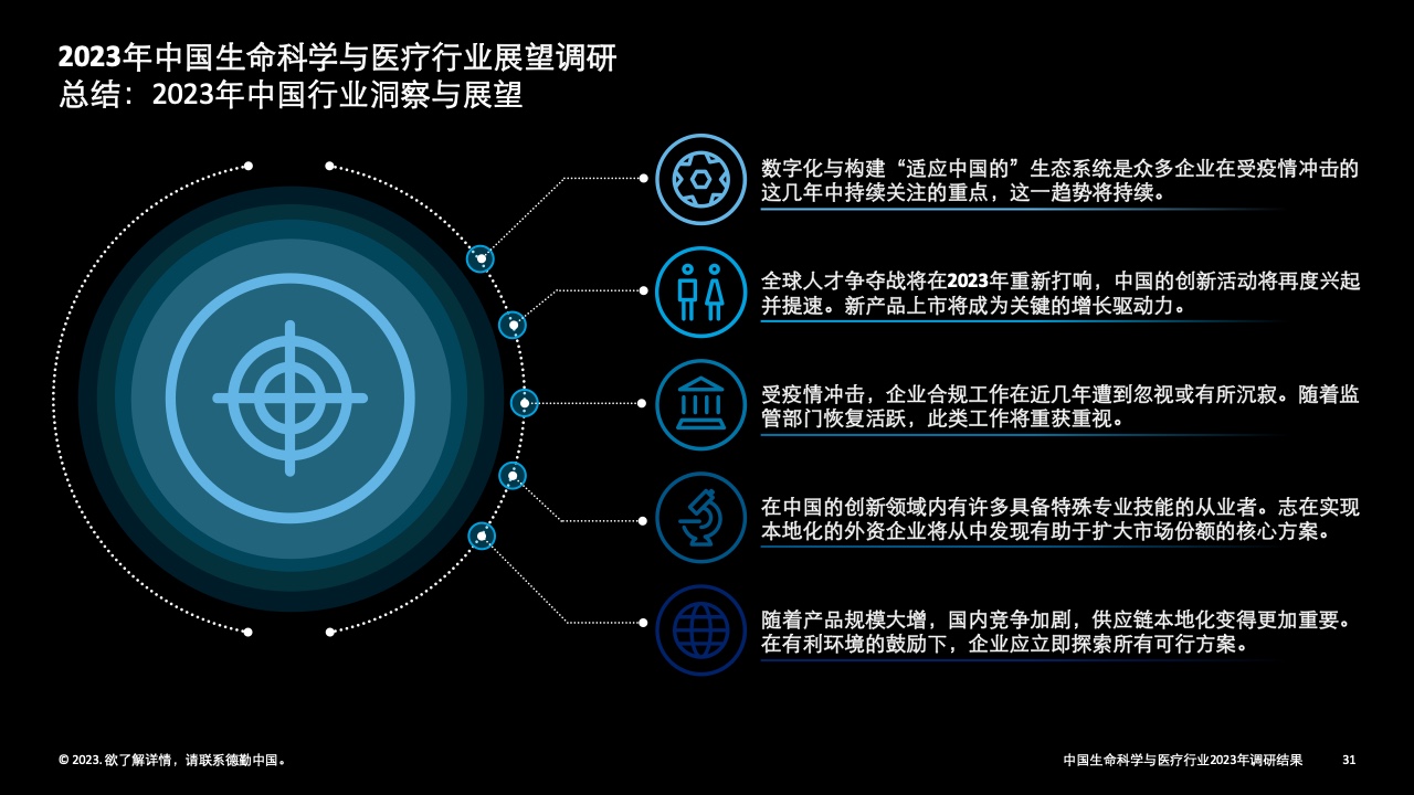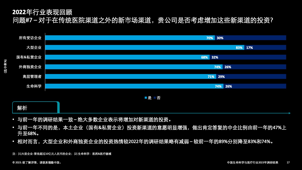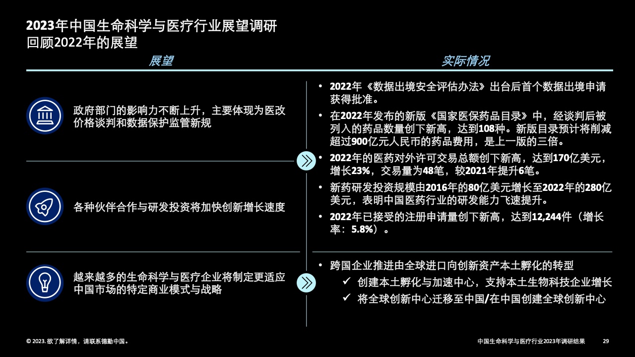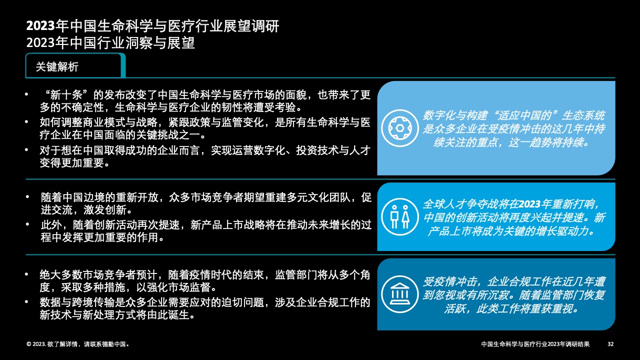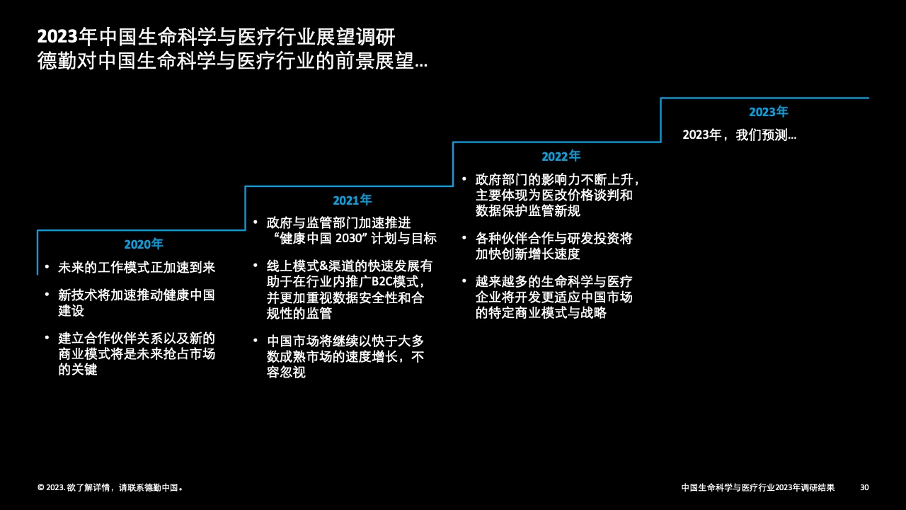 带量采购等医改政策依旧是影响最长远的因素,对私营企业(71%)、大型企业(69%)和生命科学企业(63%)的影响尤为严重。