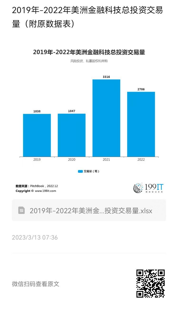 2019年-2022年美洲金融科技总投资交易量(附原数据表) ​​​