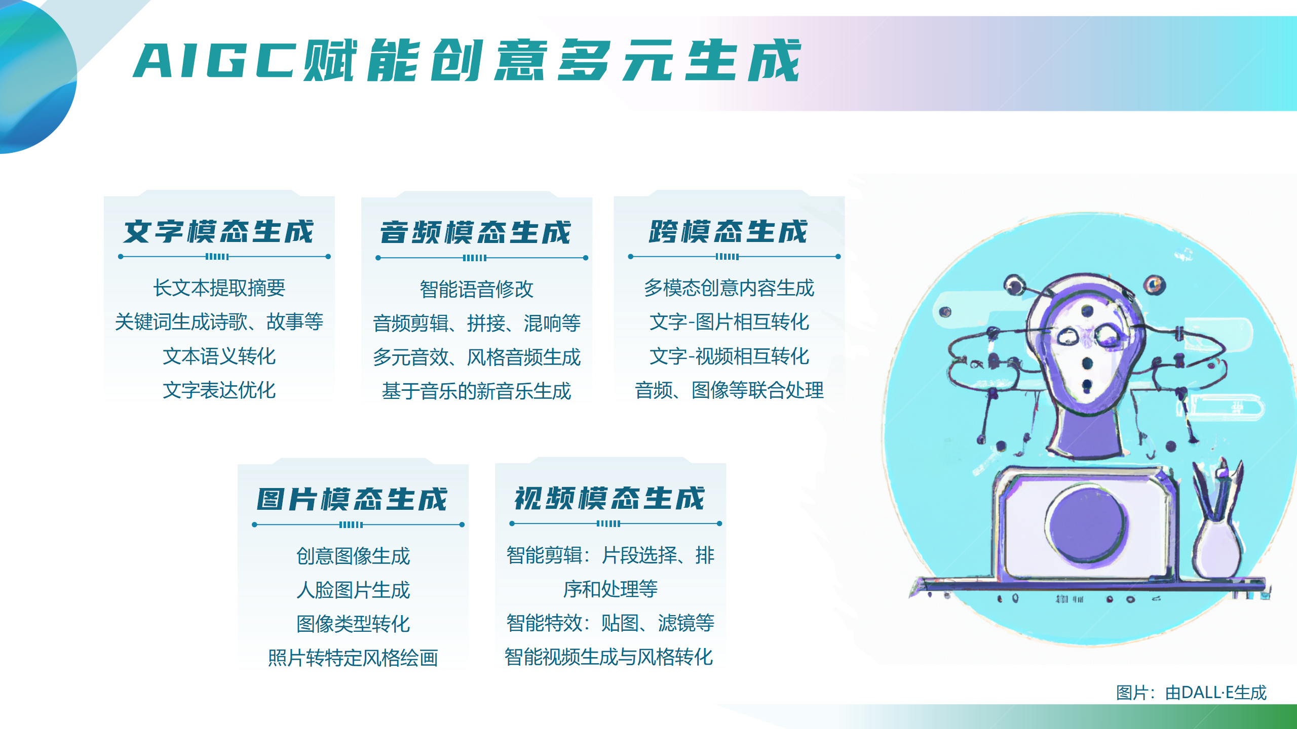 看点2:2022年是AIGC迎来爆发元年!在生成算法、预训练模型以及多模态技术突破的推动下,AIGC的创意生成从文字、图片、音频、视频延伸至跨模态形态,更具高效率、低成本、定制化、个性化、多样性和智能化优势,为人类创意生成带来新方案。