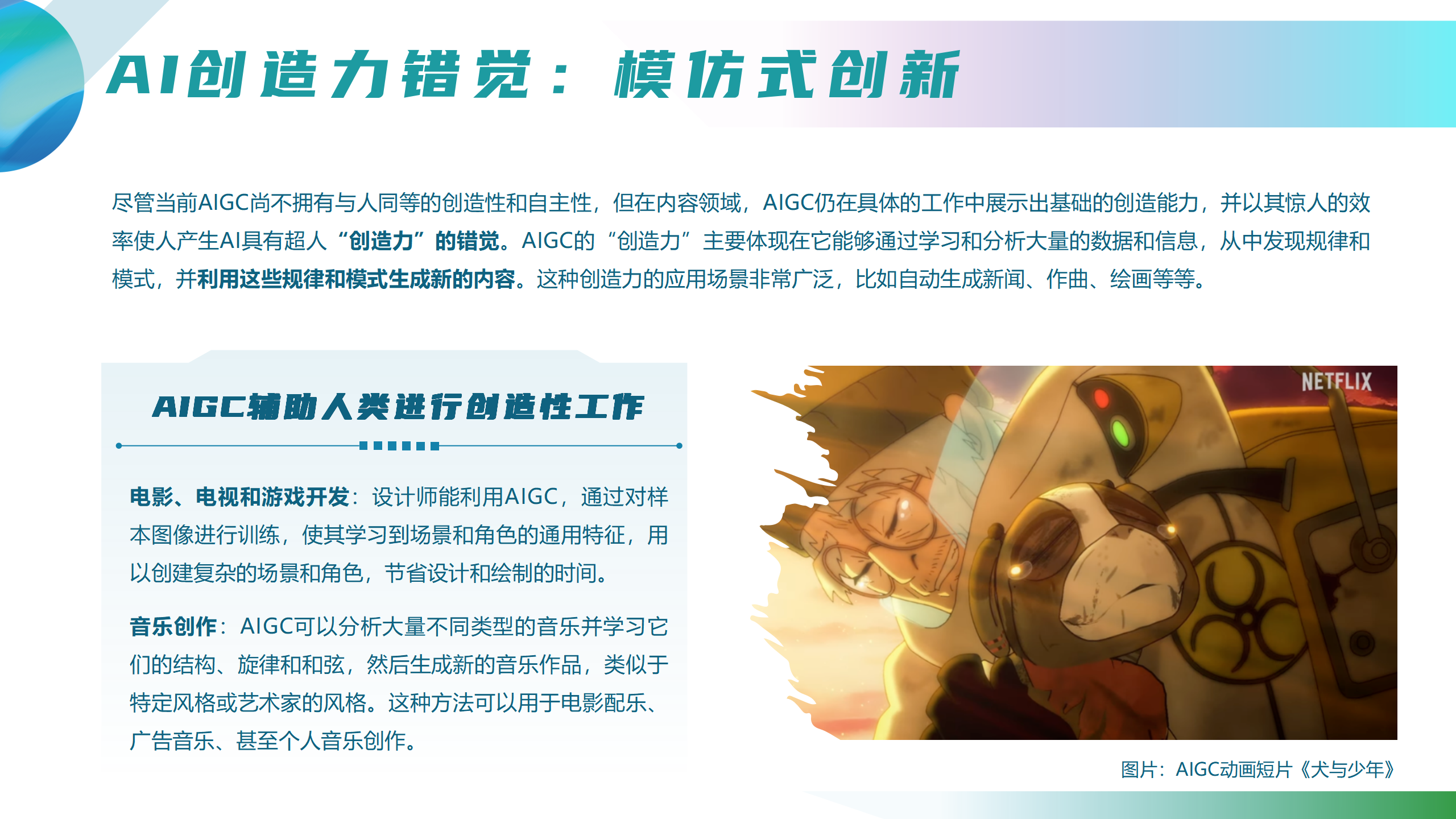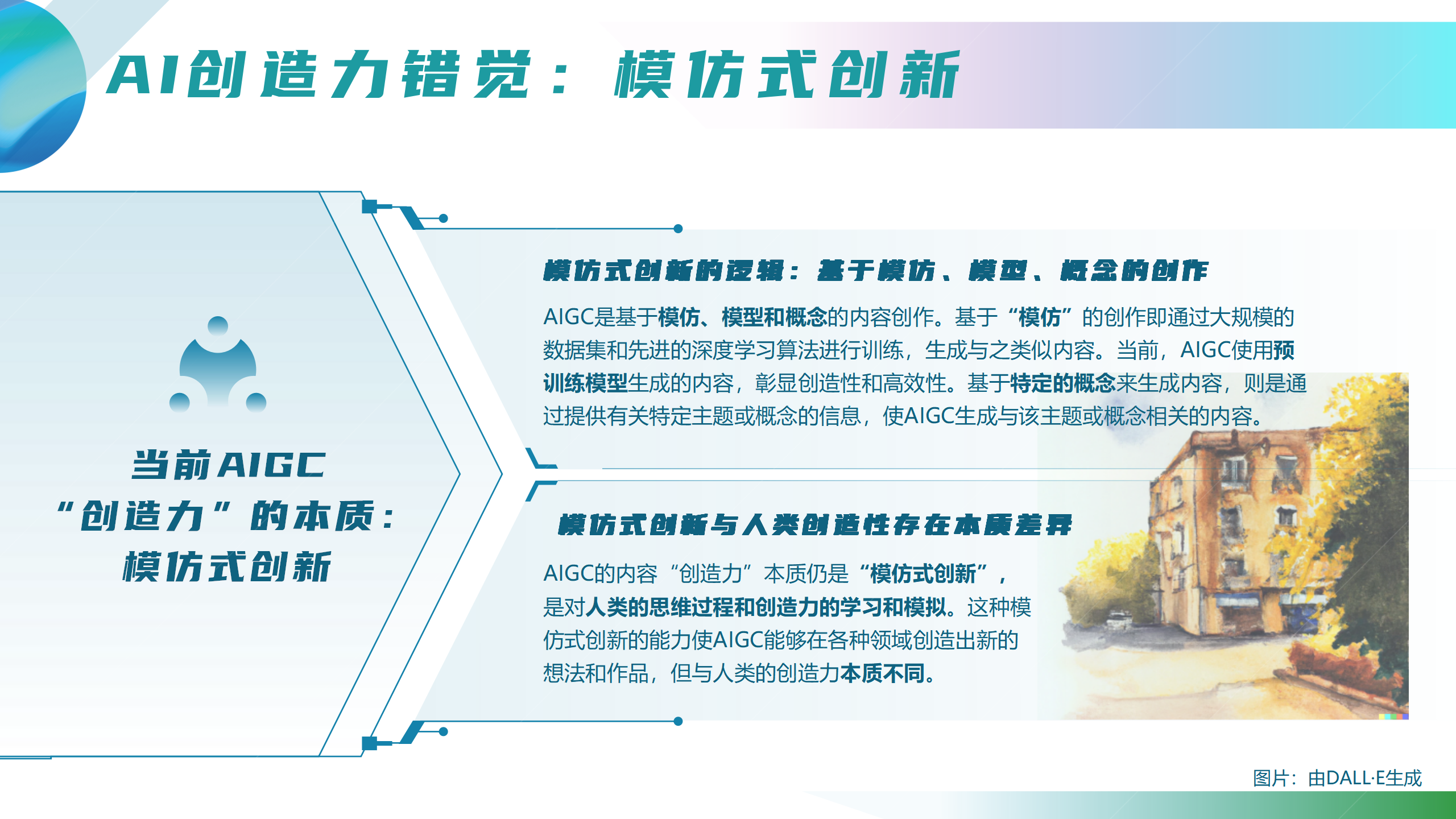 看点5:AIGC的内容生产是基于模仿、模型和概念的创作,在“理解和表达情感”、“独创性和创新性”、“非结构性问题”等方面的问题难以回避。尽管AIGC有诸多“创造力”表现,但其本质仍是“模仿式创新”,本质上无法替代人类创造力。