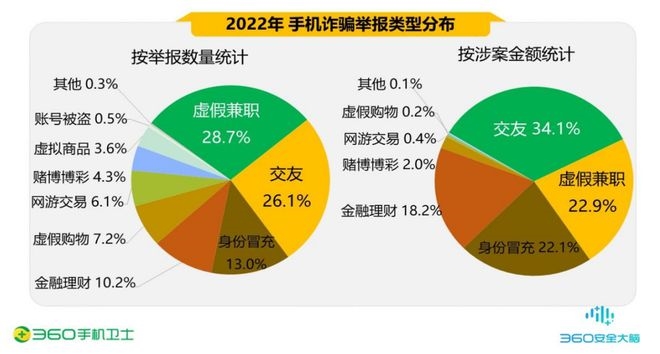360手机卫士联合新华财经发布了《2022年度中国手机安全状况报告》,在所有诈骗类型中,虚假兼职占比最高,达28.7%,受害者中男性占比较高,占66.3%,90后的手机诈骗受害者占所有受害者总数的37.8%,是不法分子网络诈骗的主要对象。