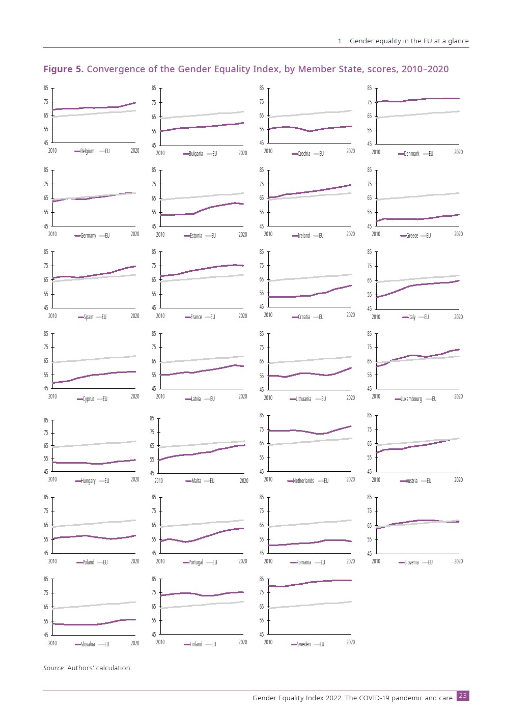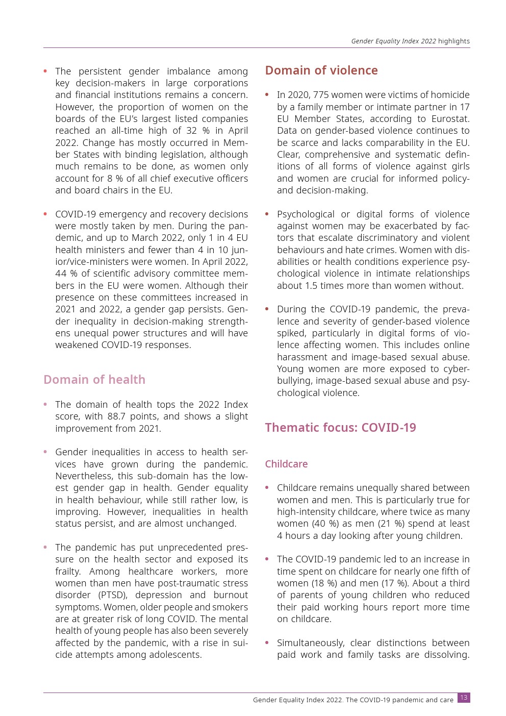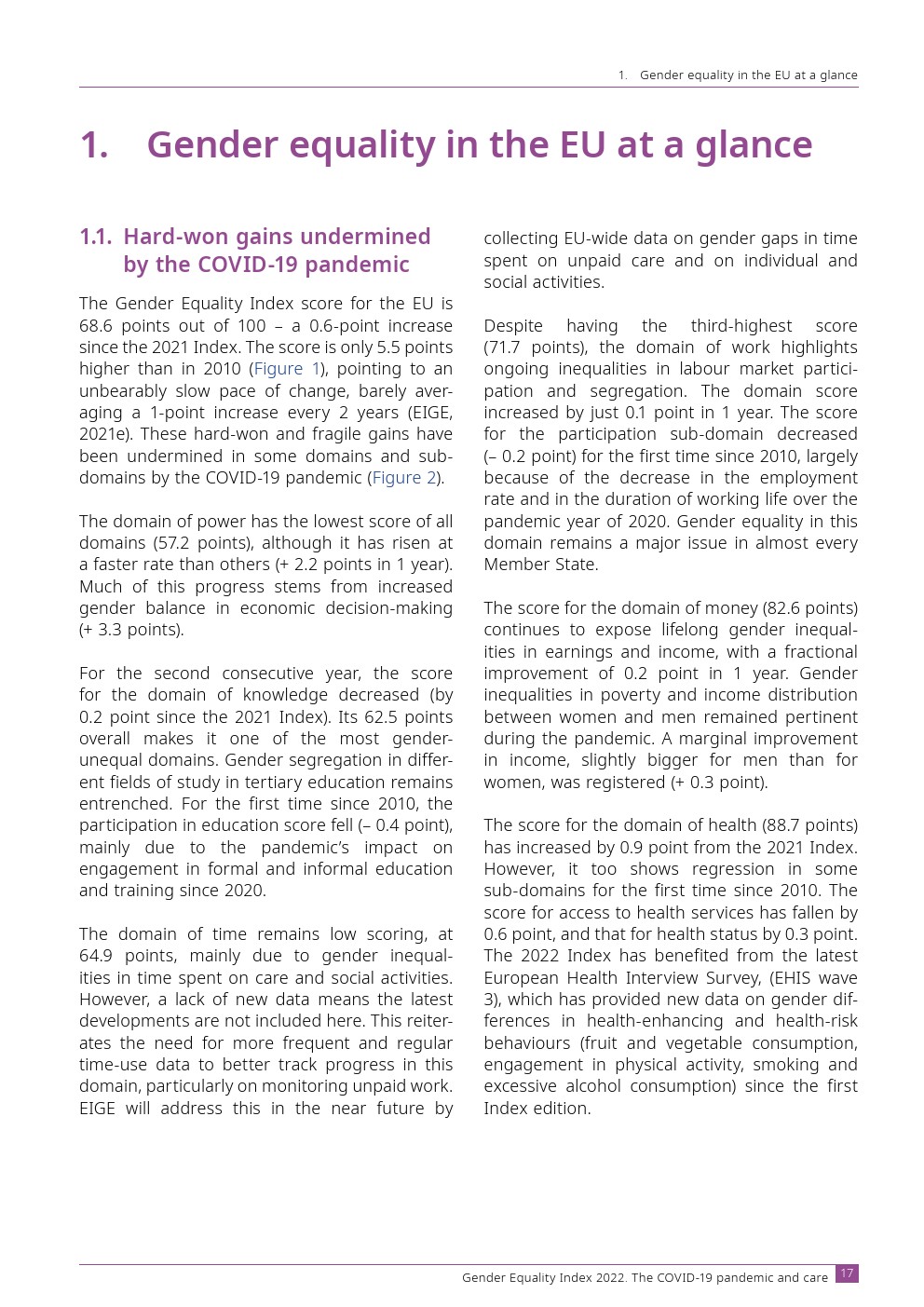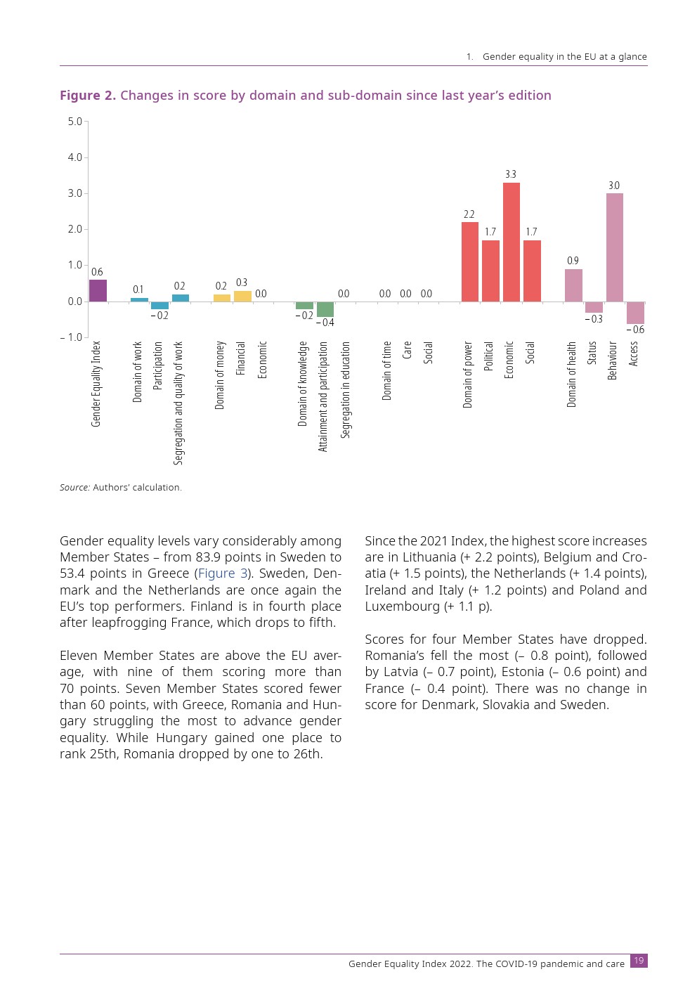 欧洲性别平等研究所发布了“2022年性别平等指数”。欧盟的性别平等指数得分为 68.6 分(满分 100 分)。这标志着进步,但仅此而已。性别平等的进步在很大程度上是由权力领域推动的,而权力领域反过来在欧盟具有最大的性别不平等。如果没有这个域,指数得分将会下降。