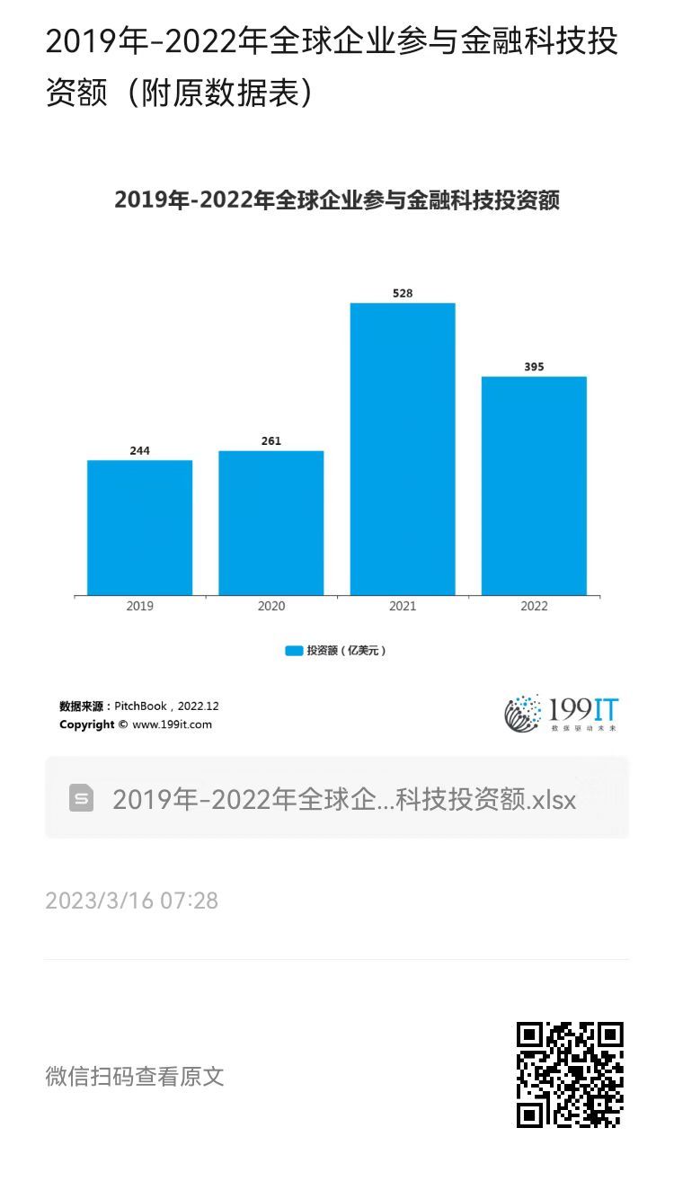 - 2019年-2022年全球企业参与金融科技投资交易量(附原数据表)