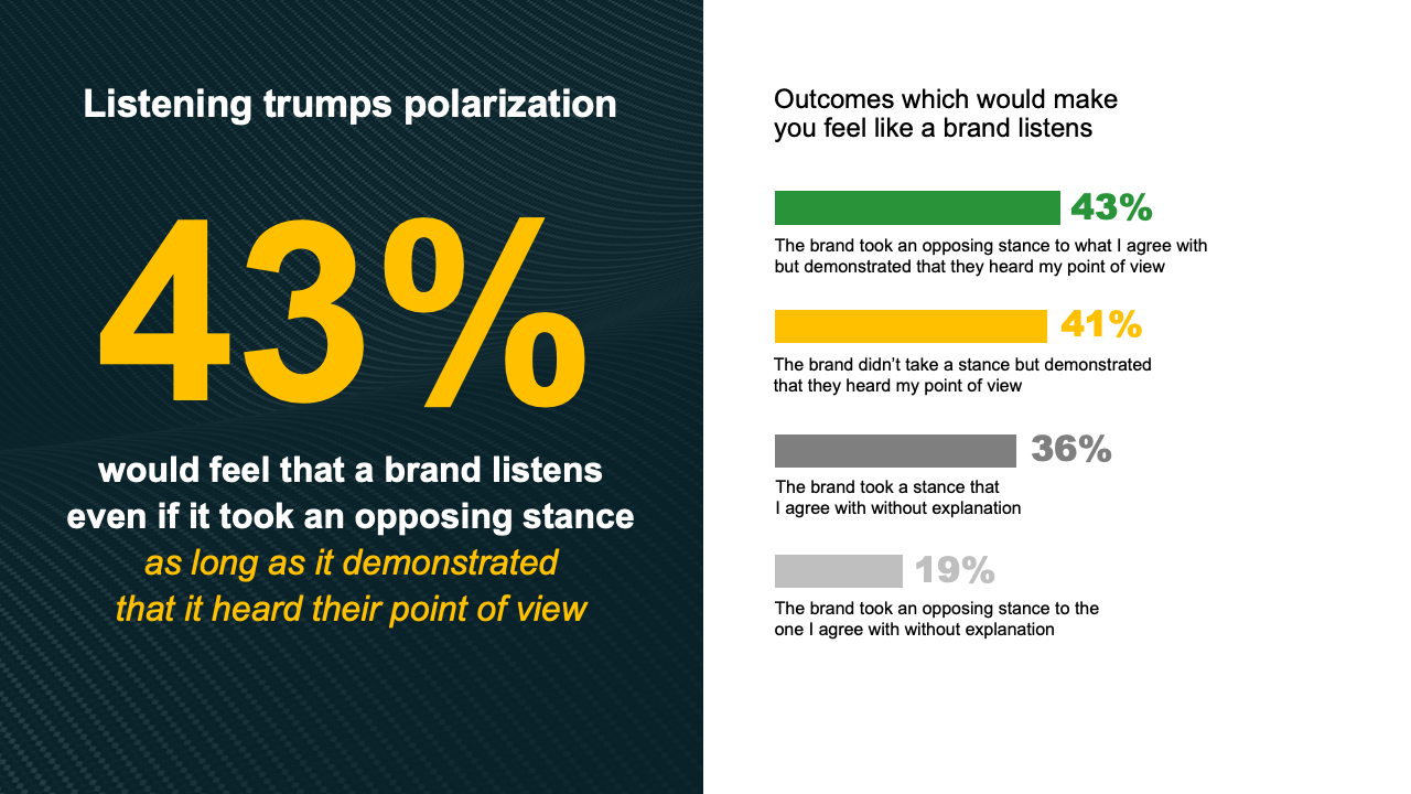 今天的消费者乐于与品牌互动,并重视能够表达他们意见的机会。 在吸引两极分化的消费者群体时,最重要的是品牌正在倾听。