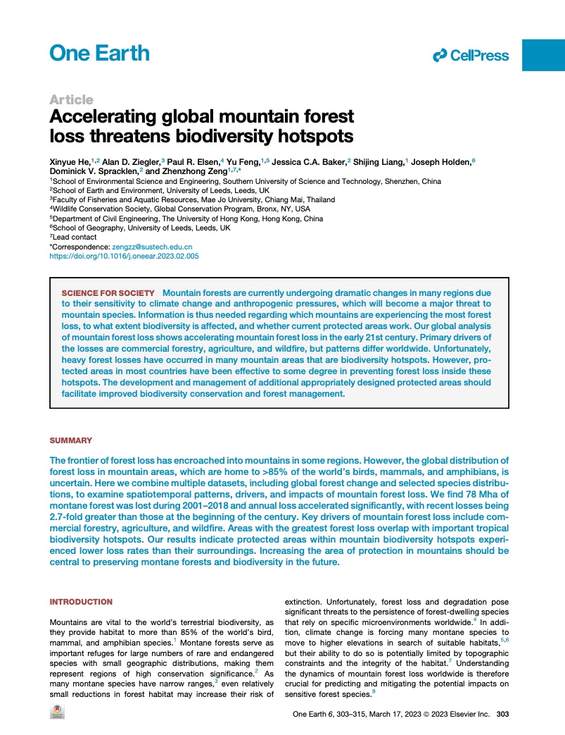来自中国南方科技大学和英国利兹大学的作者们说,造成山林消失的主要原因是商业采伐、山火、“刀耕火种” 和商品农业。
