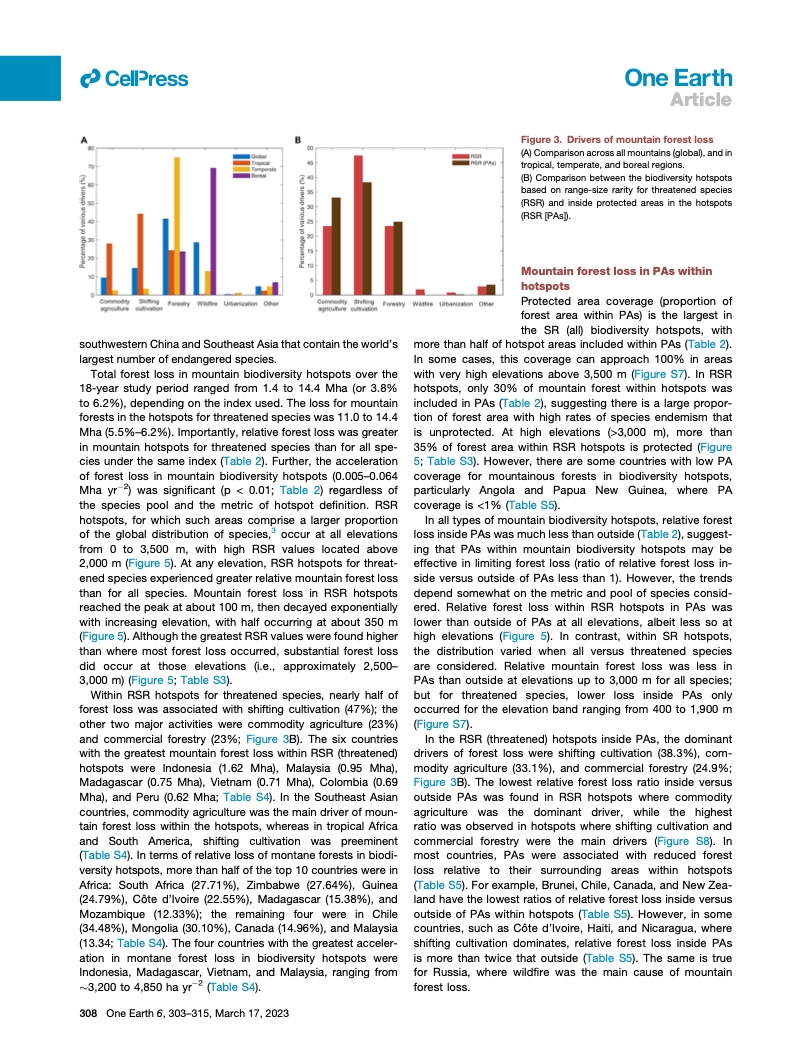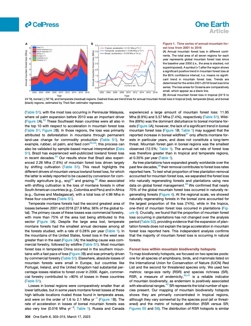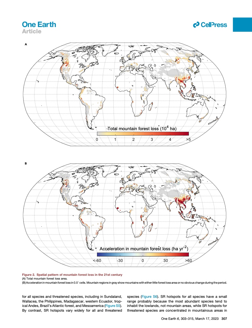 他们说,尤其令人关注的是,在 “热带生物多样性热点地区”——稀有和濒危物种的避难所——森林遭到了严重的破坏。历史上,高海拔和陡坡限制了人类对山林的开发。但自世纪之交以来,它们越来越多地成为木材并被用于农业。