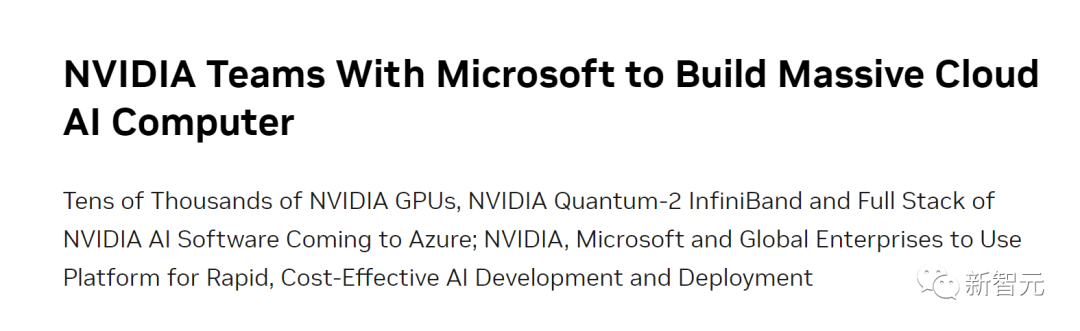 其实,在去年11月,微软就曾官宣,要与Nvidia联手构建「世界上最强大的AI超级计算机之一」,来处理训练和扩展AI所需的巨大计算负载。