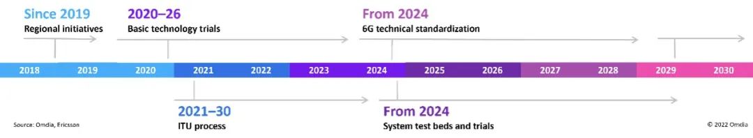 • 2022 年 6 月,国际电联的 “IMT for 2030 and beyond”(又称“6G”) 研讨会汇聚了各个地区的利益相关方,旨在介绍、讨论 6G 愿景以及正在进行的研究活动。2023 年年底,业界将在迪拜举行的 WRC-23 会议上讨论 6G 标准化工作。