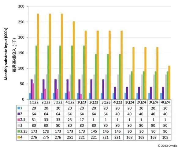 图 1:2022-24 年小尺寸 TFT 工厂每月玻璃基板投入