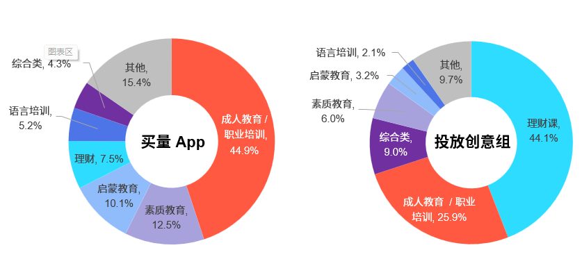 三、教育类App投放总体增长乏力,理财课App买量异军突起