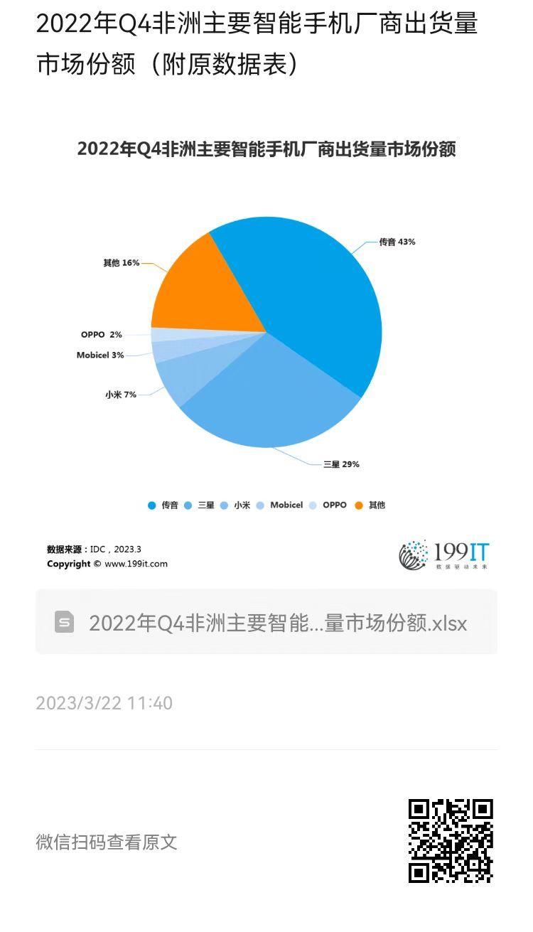 2022年Q4非洲主要智能手机厂商出货量市场份额(附原数据表) ​​​