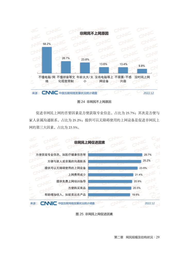 截至 2022 年 12 月,我国网民规模为 10.67 亿,同比增加 3.4%,互联网普及率达 75.6%。其中,城镇网民规模为 7.59 亿,农村网民规模为 3.08 亿,50 岁及以上网民群体占比提升至 30.8%;全年移动互联网接入流量达 2618 亿 GB。