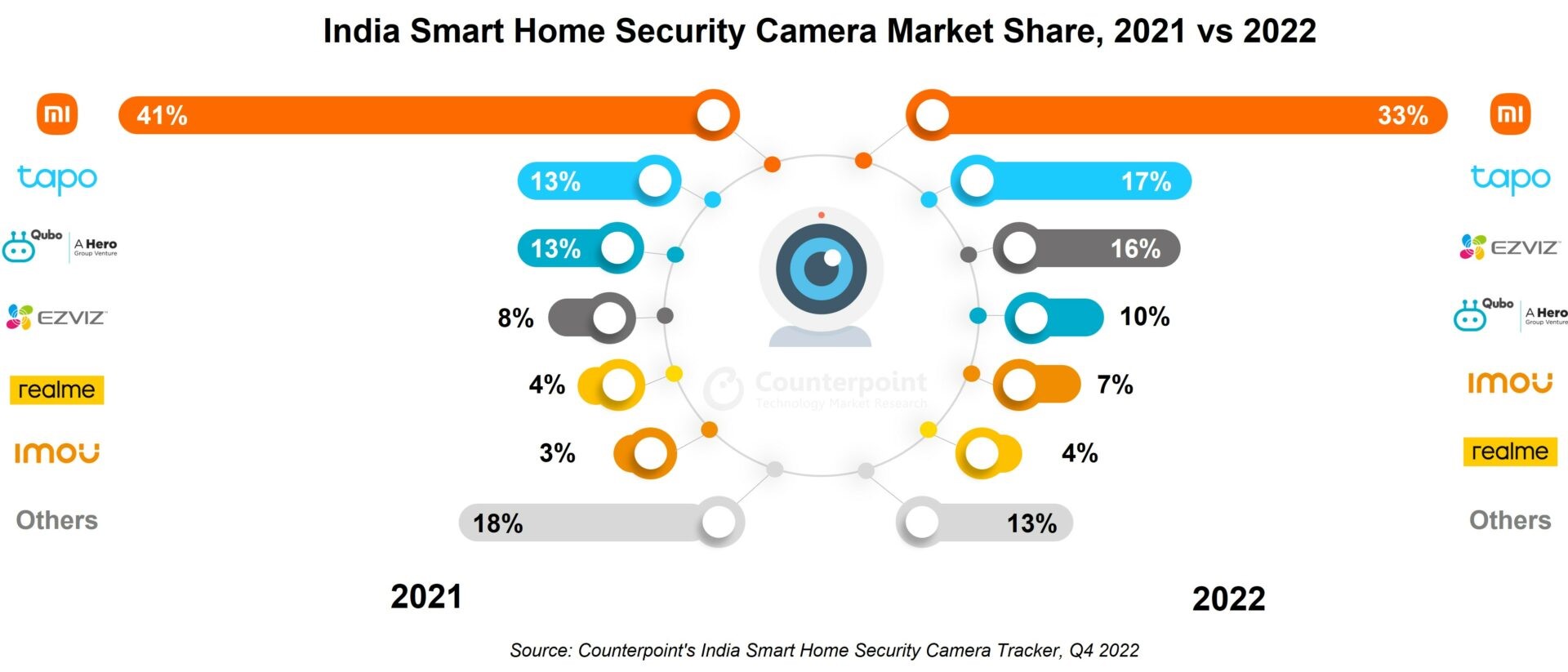 小米在 2022 年同比增长 15%,以 33% 的份额领先。第三季度推出了一款新的 3MP 2K 相机,为客户提供更优质的体验。
