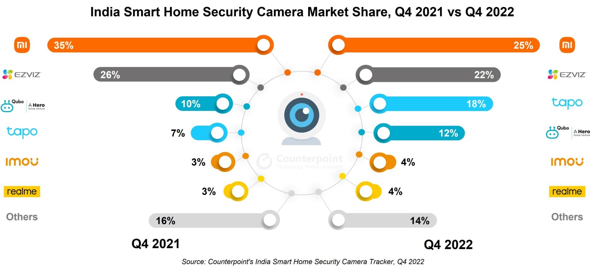 TP-Link 的 Tapo 在 2022 年继续位居第二,年增长率高达 88%,市场份额为 17%。 Tapo 主导了亚马逊和 Flipkart 等在线市场。它的增长也可以归因于产品的多样化以及激进的定价。