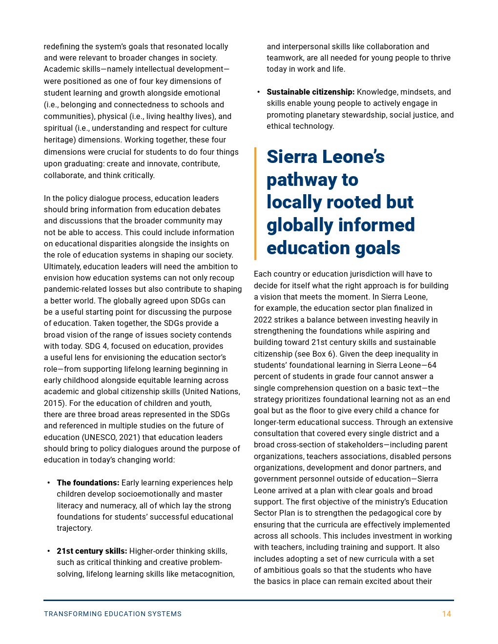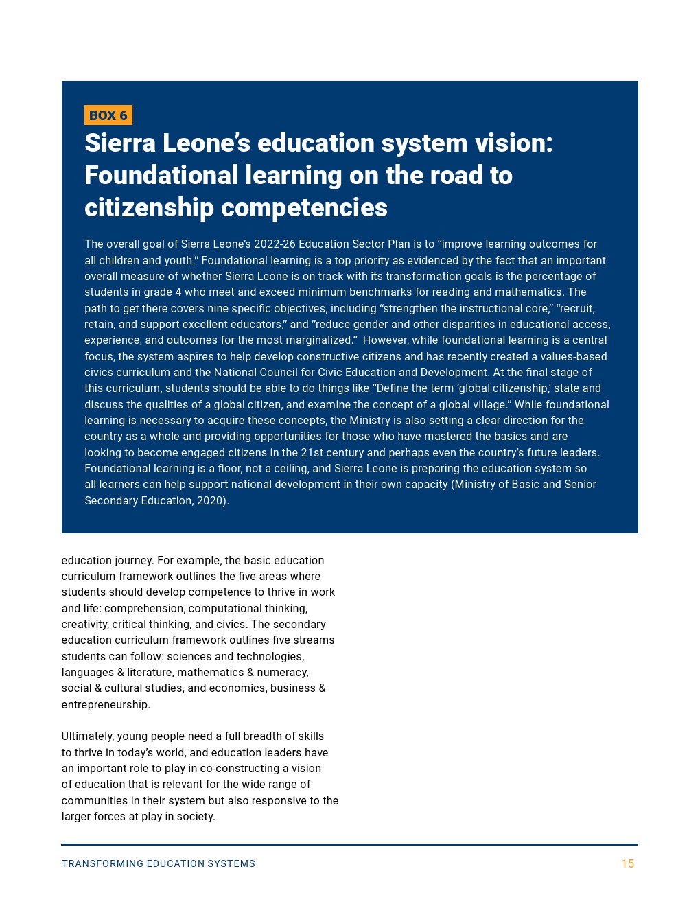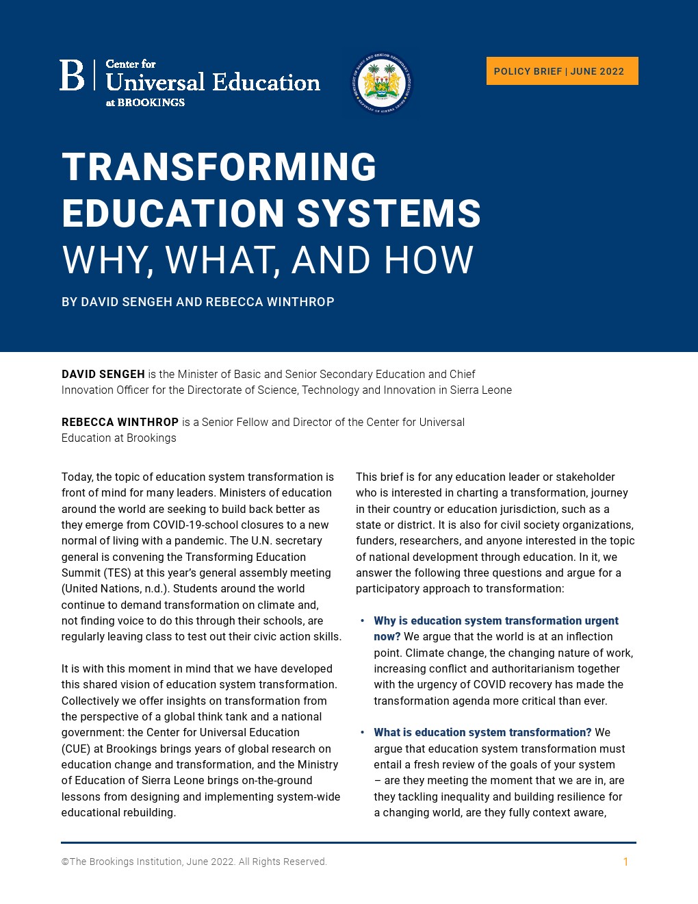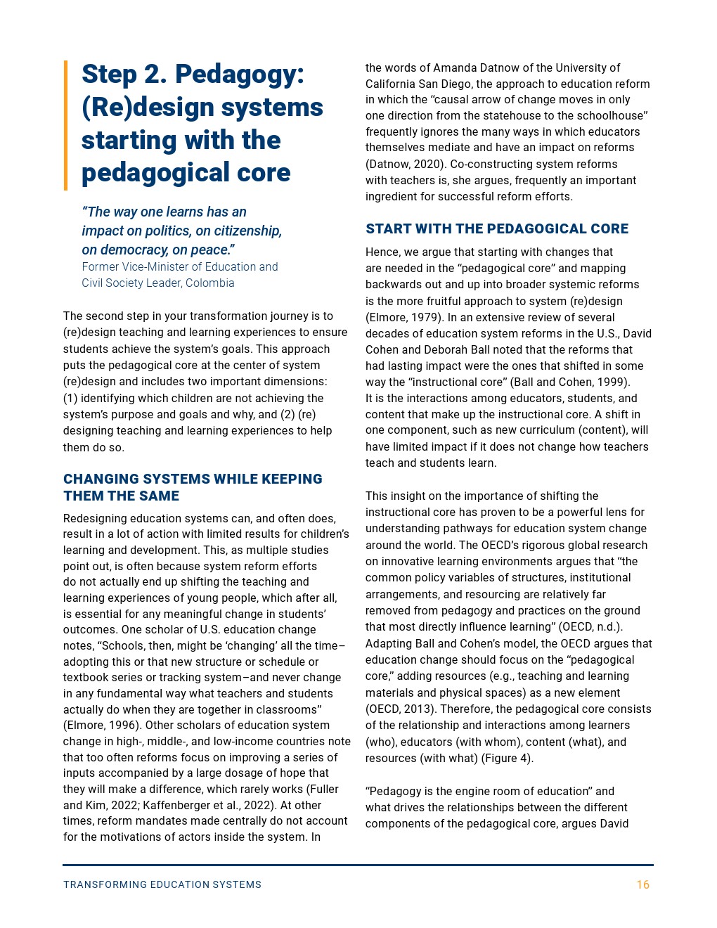 “利用不断发展的教育转型讨论”是联合国秘书长在9 月的联合国大会会议上召集 TES 的动机之一。 为峰会做准备的一系列活动包括巴黎峰会、全国磋商、区域和全球对话,以及各国对转型的承诺。虽然改革教育系统背后有明显的动力,但问题仍然是它究竟是什么以及领导者可以采取哪些步骤来推进它?