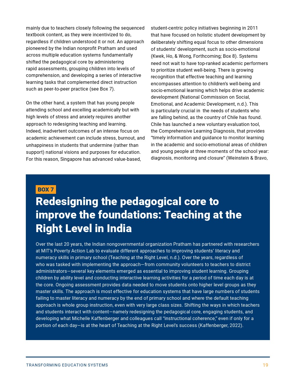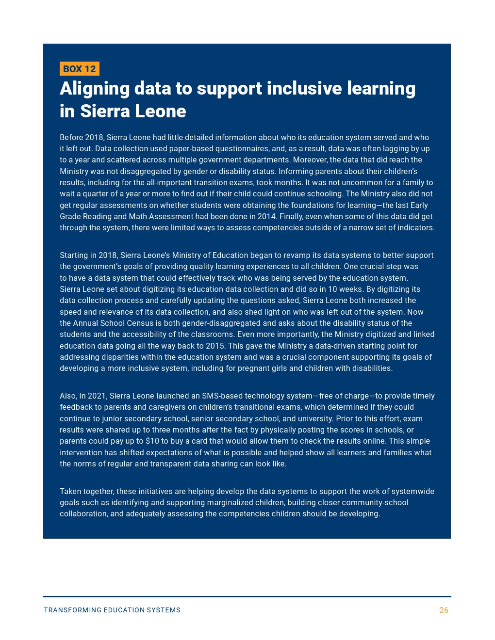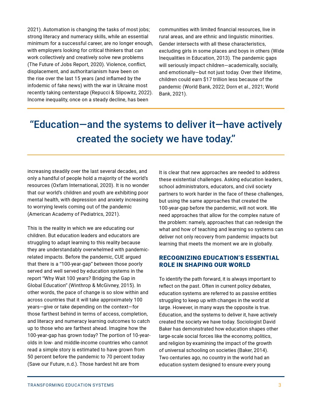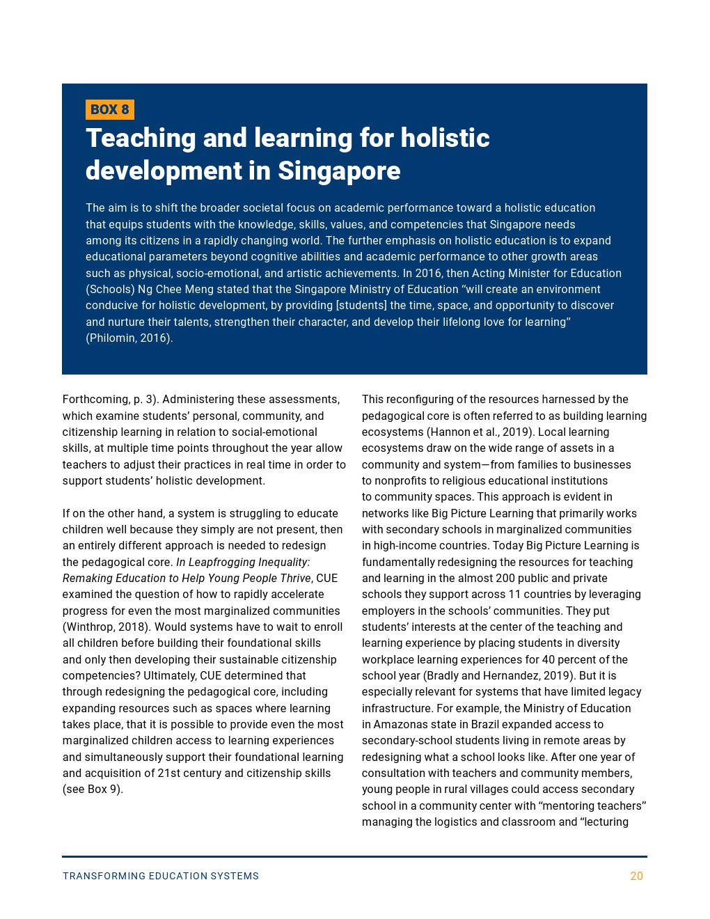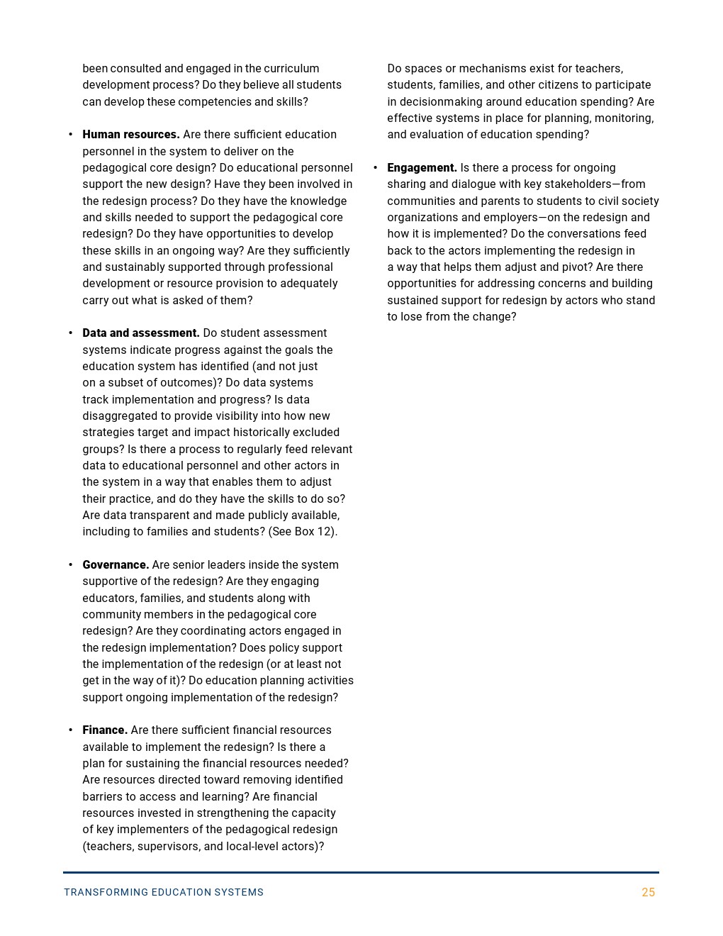 转型与过去和当前的体制改革工作有何不同? 我们认为,教育系统转型必须重新审视系统目标,它们是否满足我们所处的时刻,它们是否解决不平等问题并为不断变化的世界建立弹性,它们是否充分了解环境,它们是否广泛普及并从根本上定位教育系统的所有组成部分,以连贯一致地为这一共同目标做出贡献。 继续系统强化工作而不重新检查系统的发展方向可能会提高效率,但不会改变相关性。 除非你知道你要去哪里,否则无法改造,也无法利用现有的系统强化工具并进行改造。