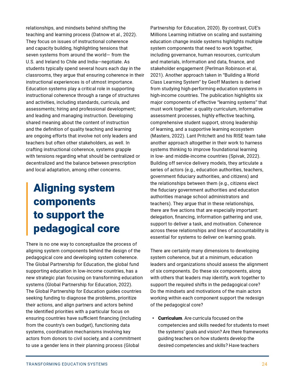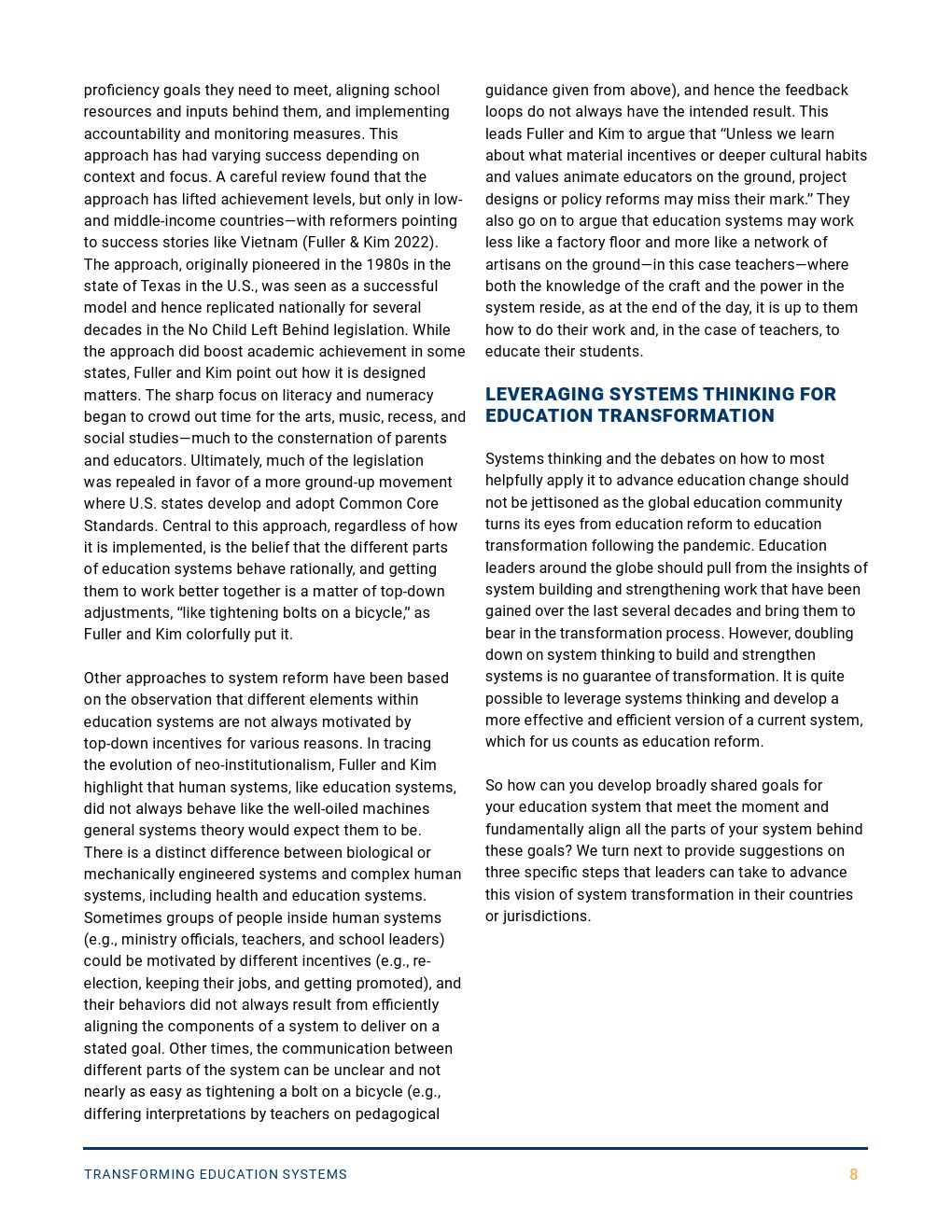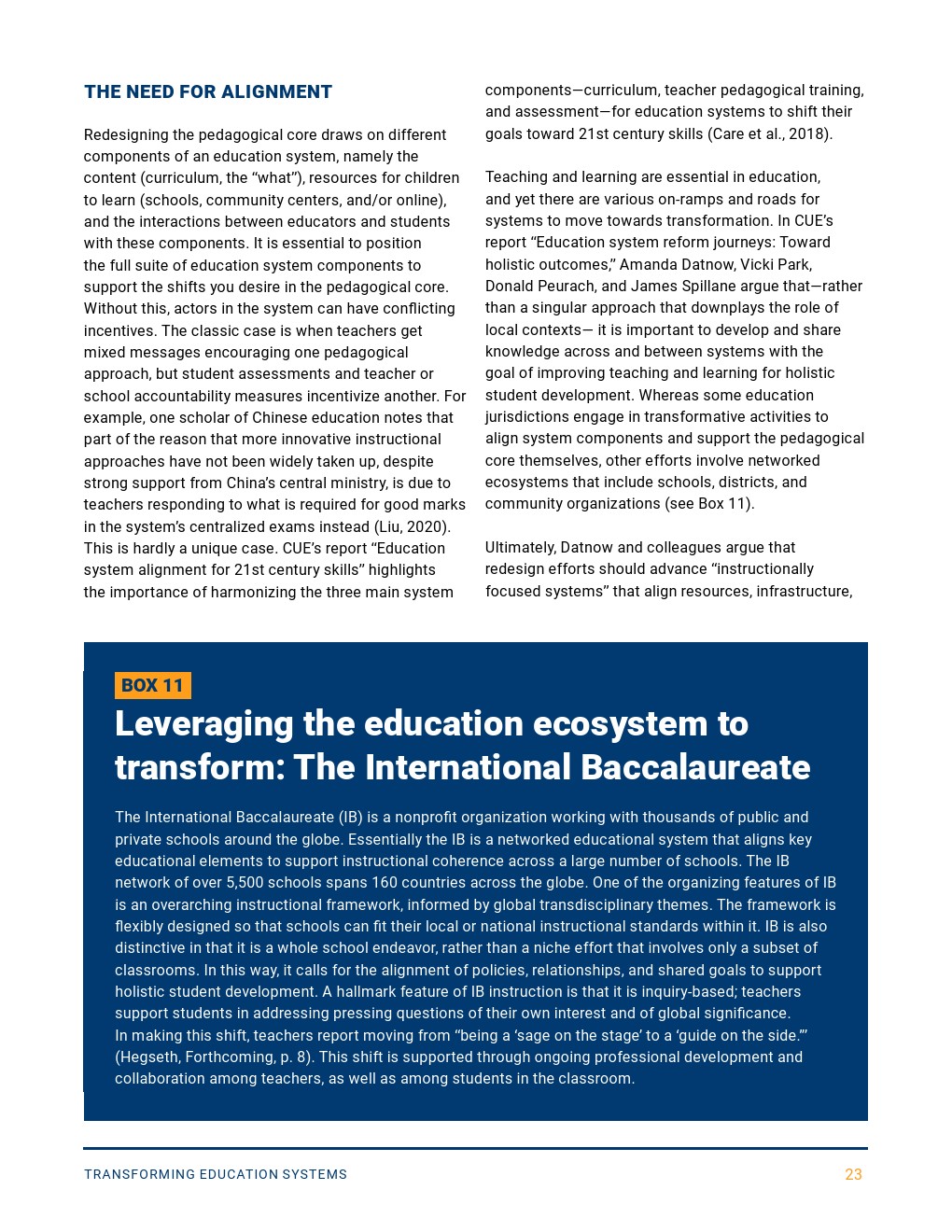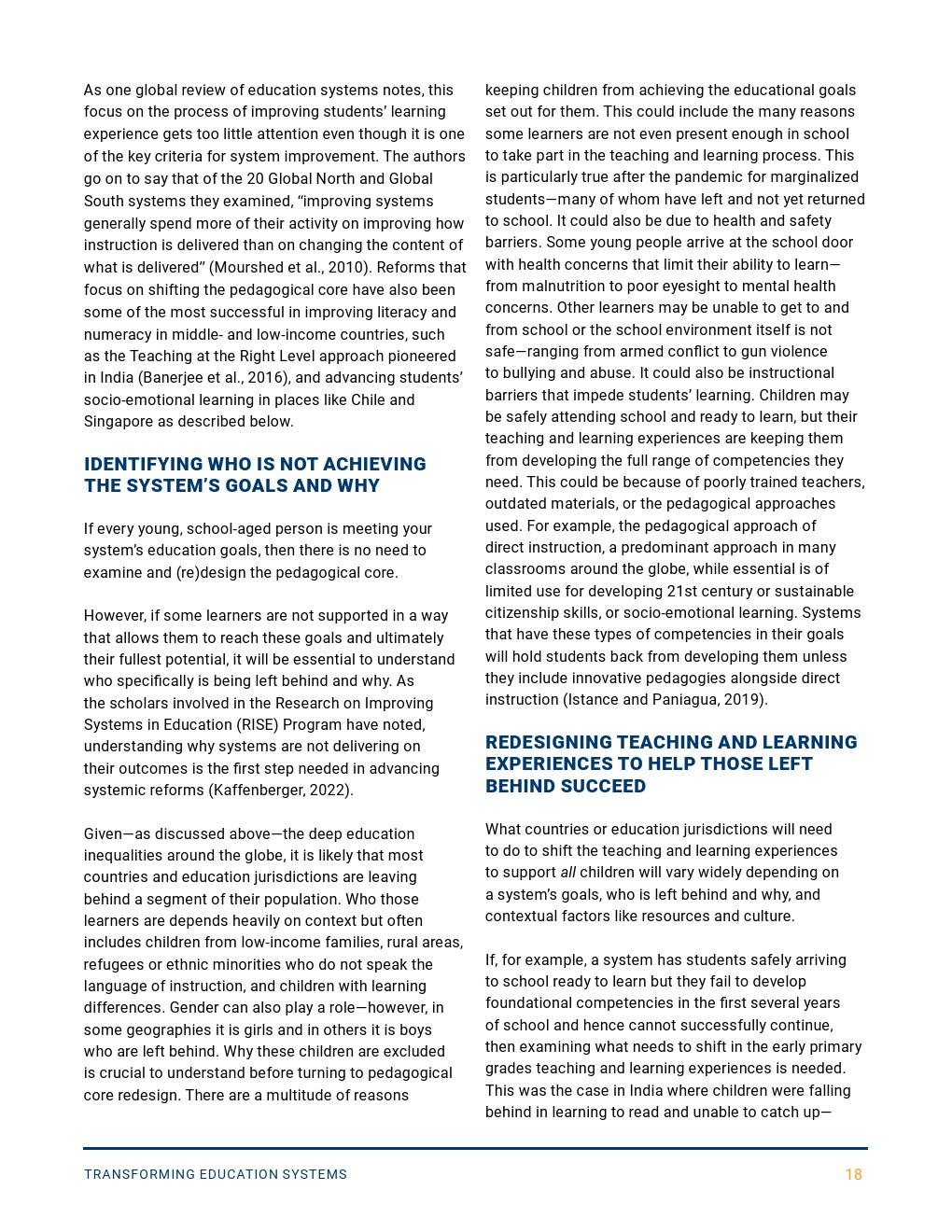 转型与过去和当前的体制改革工作有何不同? 我们认为,教育系统转型必须重新审视系统目标,它们是否满足我们所处的时刻,它们是否解决不平等问题并为不断变化的世界建立弹性,它们是否充分了解环境,它们是否广泛普及并从根本上定位教育系统的所有组成部分,以连贯一致地为这一共同目标做出贡献。 继续系统强化工作而不重新检查系统的发展方向可能会提高效率,但不会改变相关性。 除非你知道你要去哪里,否则无法改造,也无法利用现有的系统强化工具并进行改造。