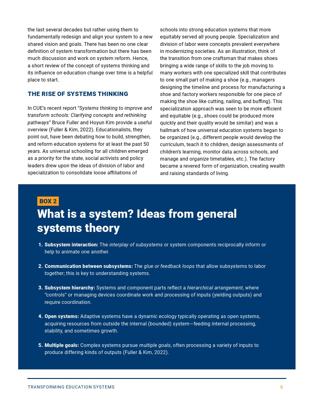 这并不意味着放弃过去几十年开发的教育系统思维见解或方法,而是从根本上重新设计并使您的系统与新的共同愿景和目标保持一致。体制改革一直没有一个明确的定义,但体制改革的讨论和工作却很多。 因此,简要回顾系统思考的概念及其对教育随时间变化的影响是一个有益的起点。