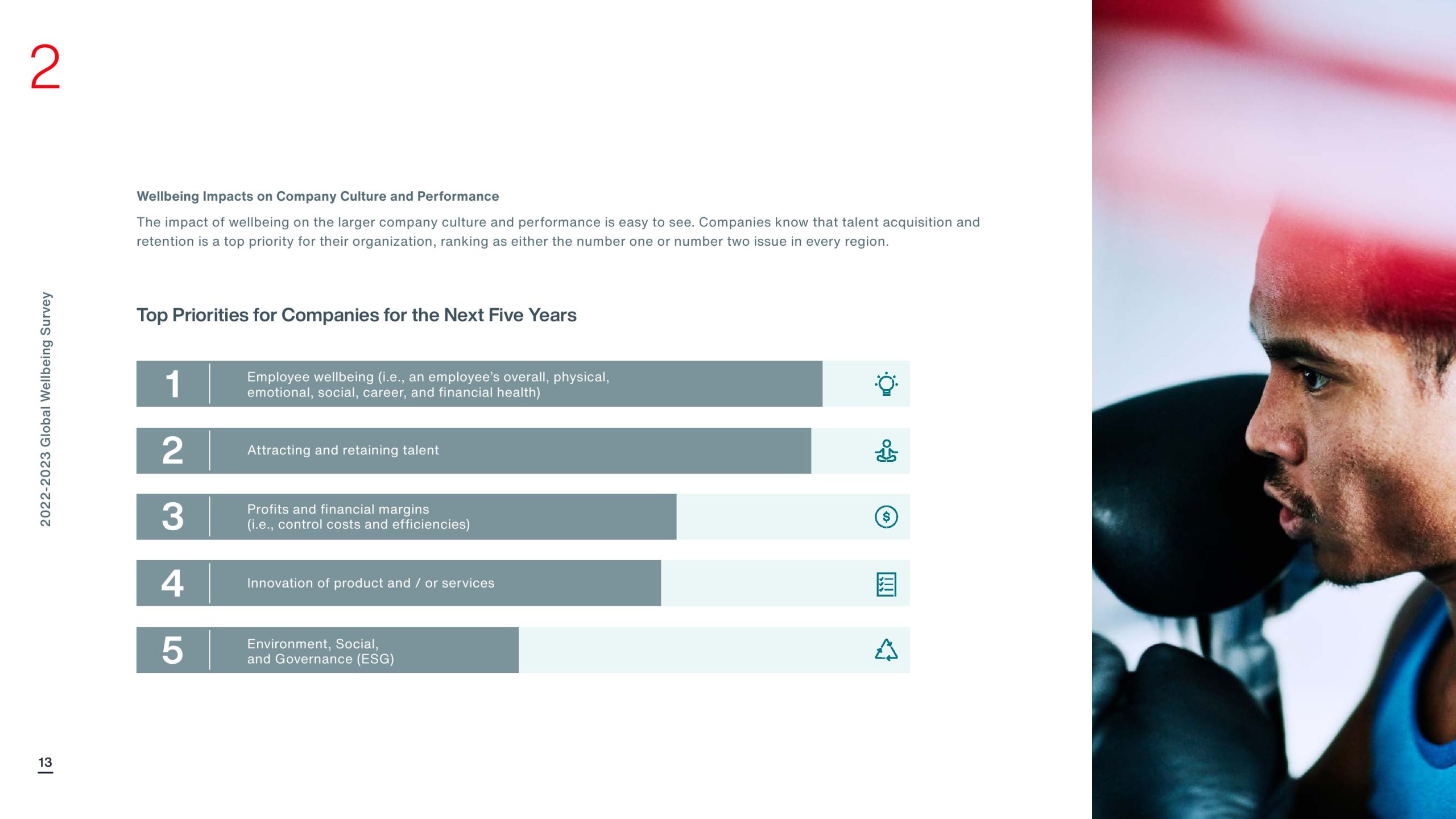 此外,在大流行开始时,福祉显然是一个优先事项,因为公司争先恐后地保护员工的安全。随着我们继续超越大流行,一些人可能会认为随着时间的推移,福祉的重要性和优先级可能会降低,尤其是在波动引起企业关注的情况下。但是,AON的最新调查的发现却恰恰相反。福祉不仅仍然是重中之重,而且在过去几年其优先级和重要性也有所增加。公司继续加大对福祉的支持和投资的承诺,并吸取了教训,即吸引和留住人才的一种方法是为员工打造可持续的工作生活。福利是公司的一种人力和绩效方法,是其中的重要组成部分。