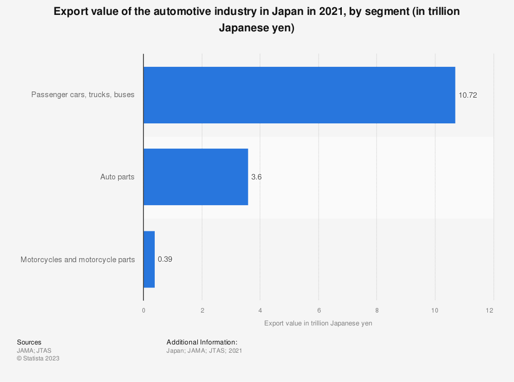 2021年日本汽车行业出口额(单位:万亿日元) 数据来源:Statista.com