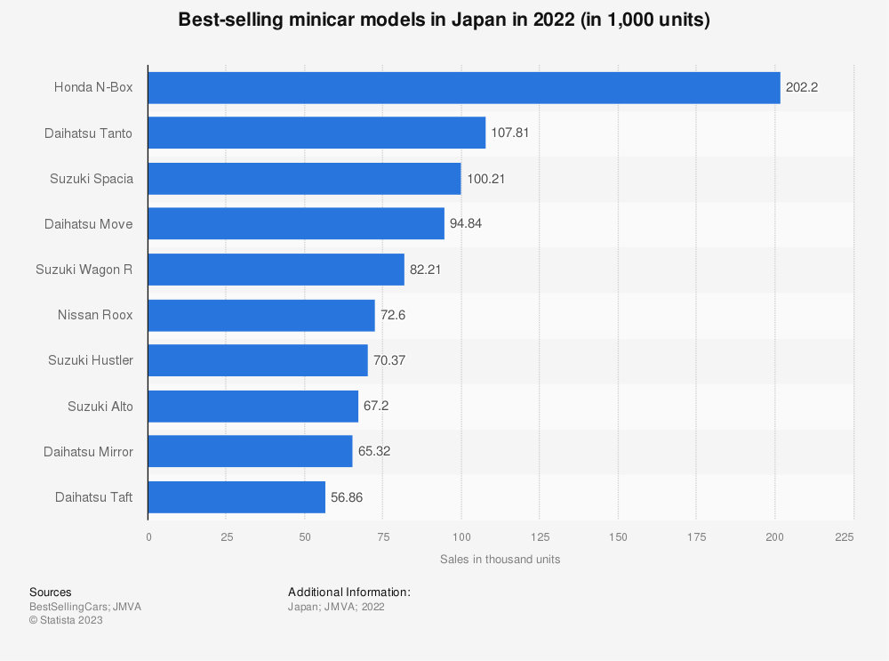 日本及其社会的特殊性,如有限的空间、老龄化社会、单身家庭的增加以及过去几十年的经济停滞,决定了日本国内汽车工业的发展方式。该行业的独特特征之一是轻型机动车的发展——即,所谓的轻型车(Kei car/K-Car)。轻型汽车投放市场后,迅速受到欢迎。2022年,日本国内最畅销的轻型汽车模型的销售量超过了最畅销的标准尺寸汽车模型。