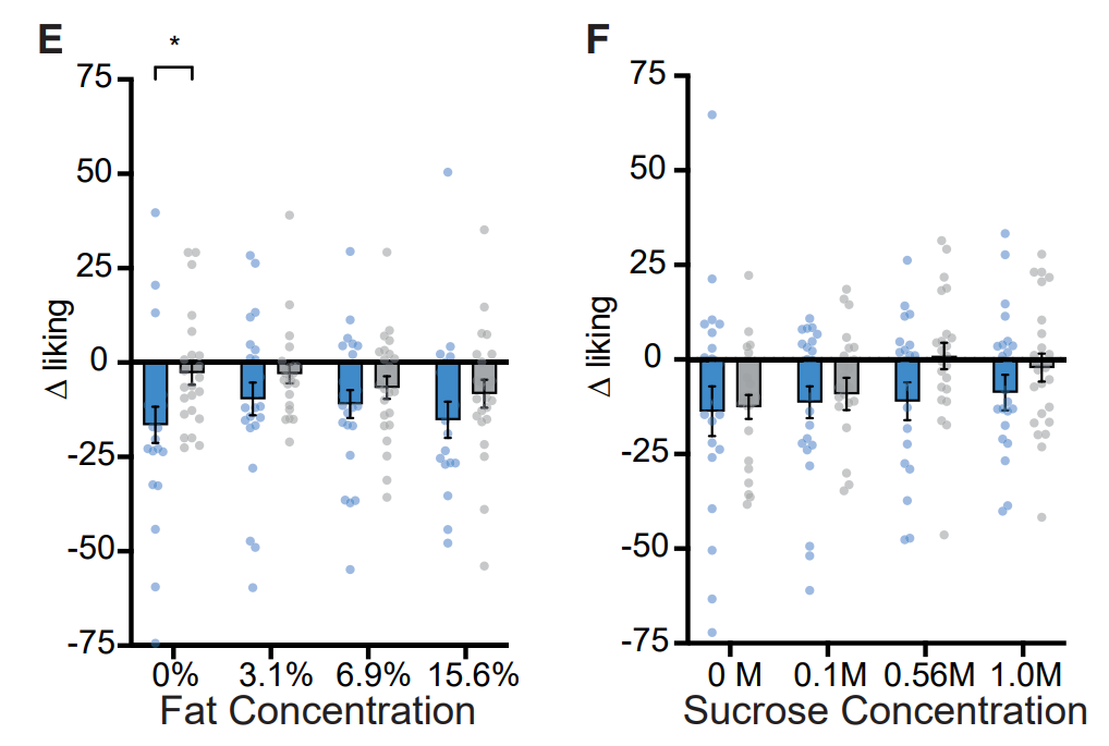 但接下来的评估显示,高脂高糖饮食组参与者对脂肪浓度最低食物的偏好大幅下降,而对照组则基本不变;同样地,高脂高糖饮食组参与者也不再喜好蔗糖浓度最低的食物,而且这种偏好改变与体重和代谢指标变化无关。