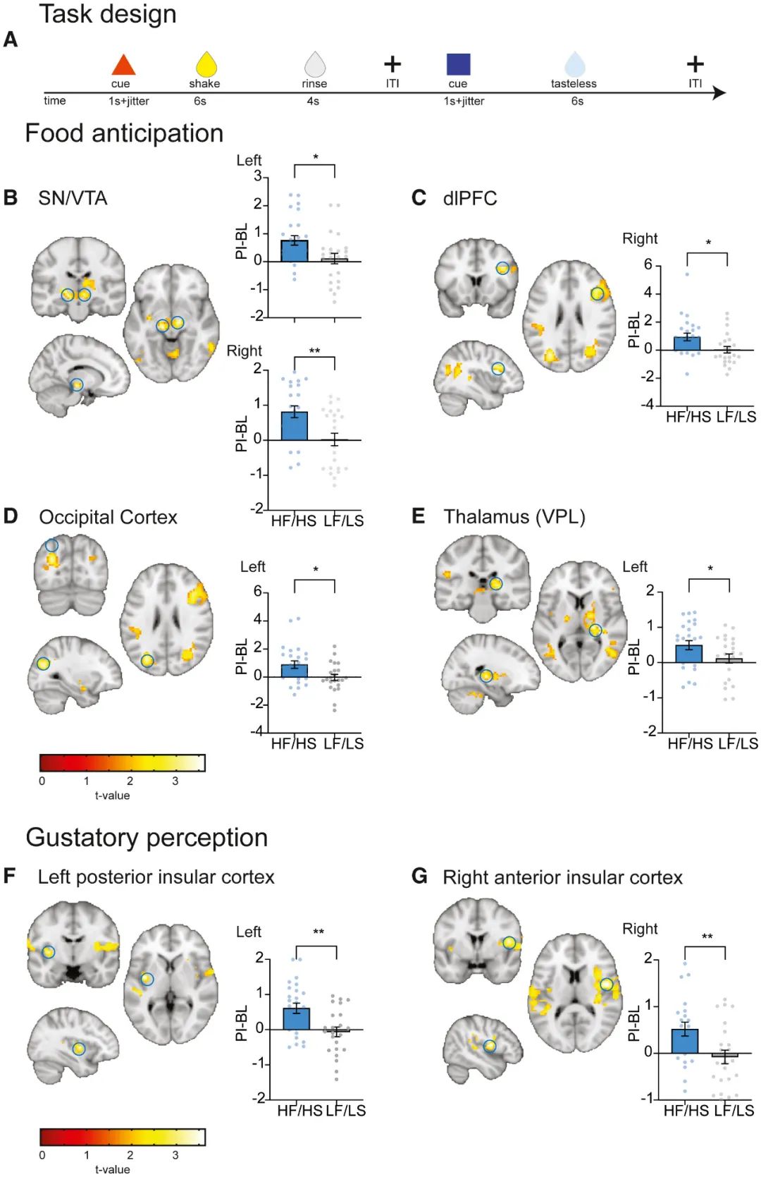 fMRI下进行的味觉测试显示,高脂高糖饮食组参与者中脑和前额叶皮层与食物预期和消耗有关的区域,对可口、高能量食物摄食信号的神经应答明显增强,与奖赏学习系统中预测误差信号(PEs)有关的神经回路募集也显著增强,而对照组参与者没有类似改变。
