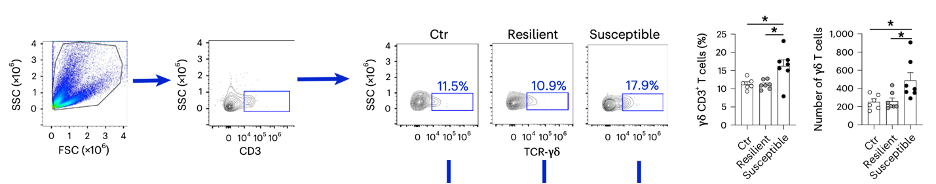 Kamiya团队发现,口服乳酸菌可以抑制CSDS小鼠的结肠处γδT细胞和γδ17 T细胞的数量增加,并且还可以增加小鼠对CSDS的适应能力。