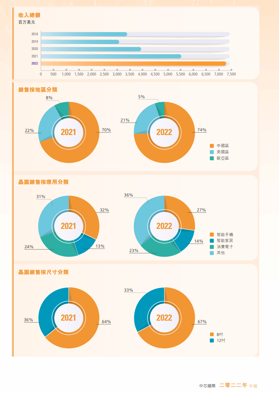 22 年来,公司累计生产晶圆折合 8 英寸超过 6,000 万片,芯片数量近千亿颗,我们的产品已进入世界各地、千家万户,广泛应用于手机、消费电子、智能家居、工业和汽车等不同领域,为科技进步和人们的美好生活做出了应有贡献。