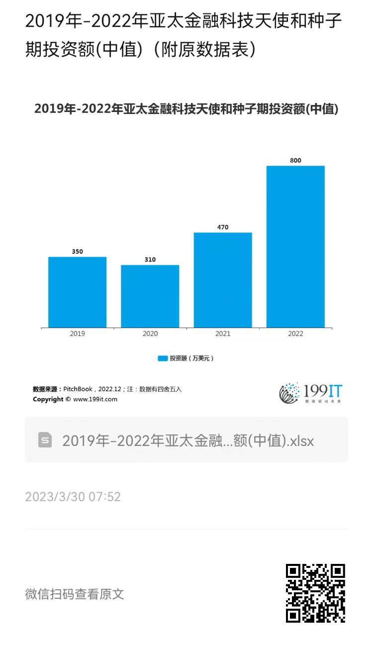 - 2019年-2022年全球金融科技天使和种子期投资额(中值)(附原数据表)