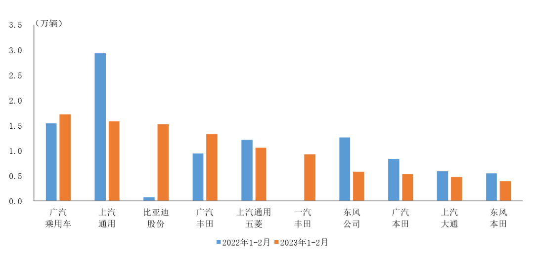 中国汽车工业协会:2023年1-2月前十家MPV生产企业销售情况简析 据中国汽车工业协会统计分析,2023年1-2月,销量排名前十位的MPV生产企业共销售10.1万辆,占MPV销售总量的81.5%。 在上述十家企业中,与上年同期相比,广汽乘用车、比亚迪股份、广汽丰田和一汽丰田销量增长明显,其他企业呈不同程度下降。 更多阅读:中国汽车工业协会:2022年1-11月前十家MPV生产企业销售情况简析中国汽车工业协会:2023年1-4月前十位MPV生产企业销售情况简析中国汽车工业协会:2022年1-9月前十家MPV生产企业销售情况简析中国汽车工业协会:2021年1-2月前十家MPV生产企业销售情况简析中国汽车工业协会:2023年1-2月我国汽车商品出口金额前十国情况简析中国汽车工业协会:2022年3月前十位轿车品牌销量排名中国汽车工业协会:2021年5月汽车工业运行情况简述中汽协:2024年1-5月前十位MPV生产企业销售情况简析中汽协:2024年1-4月前十位MPV生产企业销售情况简析中国汽车工业协会:2023年1-8月汽车制造业工业增加值保持较快增长中国汽车工业协会:2023年1-8月前十位轿车生产企业销售情况简析中国汽车工业协会:2023年1-8月前十位SUV生产企业销售情况简析中国汽车工业协会:2023年1-7月七大类汽车商品进出口金额情况中国汽车工业协会:2023年1-7月汽车制造业利润同比微增中国汽车工业协会:2023年1-7月汽车制造业营业收入保持增长