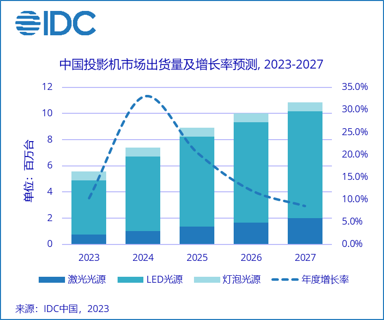 三年之久的新冠疫情对投影机市场影响深远,全球不同区域和国内的经济环境处于形势复杂的波动调整区间。无论消费市场还是主力行业需求层面以及产业链上下游相应发生变动和调整。针对市场波动,IDC对未来预测适当调减了预期。