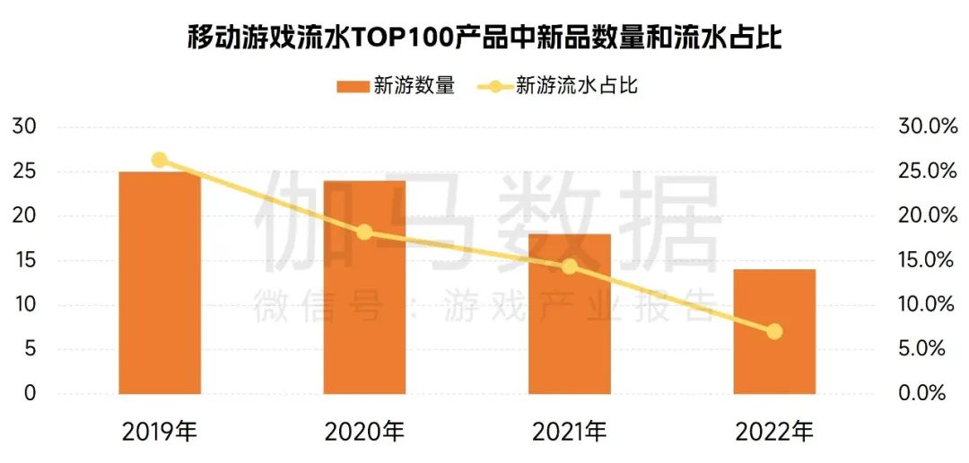 新游表现持续下滑 流水TOP100中新品数量和流水占比均下降