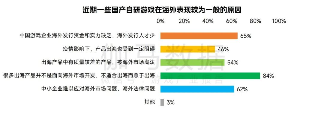 近期国产出海游戏相对缺少爆款新品,伽马数据的调研结果显示,出海产品不适合出海而急于出海是造成近期一些国产游戏在海外表现较为一般的最主要的原因。