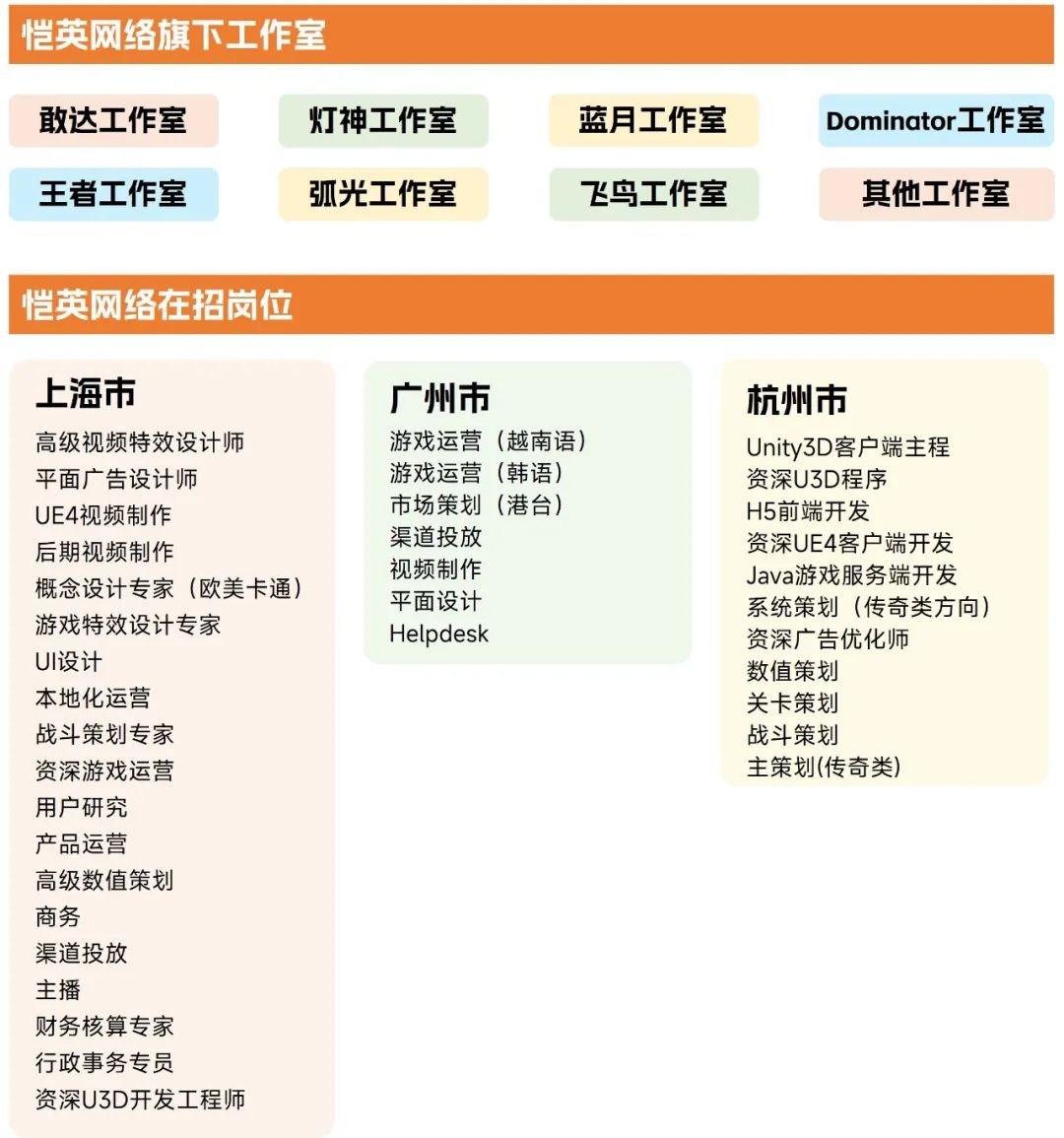 从企业管理模式的角度,恺英网络发布股权激励计划与员工持股计划,并建立人才考评的长效机制,充分调动研发人才积极性,并通过社招和校招吸引更多研发人才加盟;恺英网络还打通了上海团队和浙江团队(盛和网络)的研发体系,实现两大核心子公司的研发资源共享;此外,恺英网络进一步优化了企业内部分工,将每个项目组专注于其所擅长的赛道,充分发挥不同项目组各自的优势,并创建美术中心,提升团队的工业化生产水平,打造管线化、标准化、模块化、自动化的研发体系。