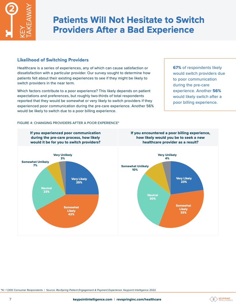 此外,由于糟糕的计费体验,一小部分患者(56%)至少有可能寻求新的医疗保健提供商。