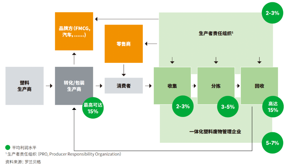 塑料收集与分类环节利润薄弱:收集和分类的利润率仅有2-5%,主要因为收集工作通常由一般废弃物供应商负责;