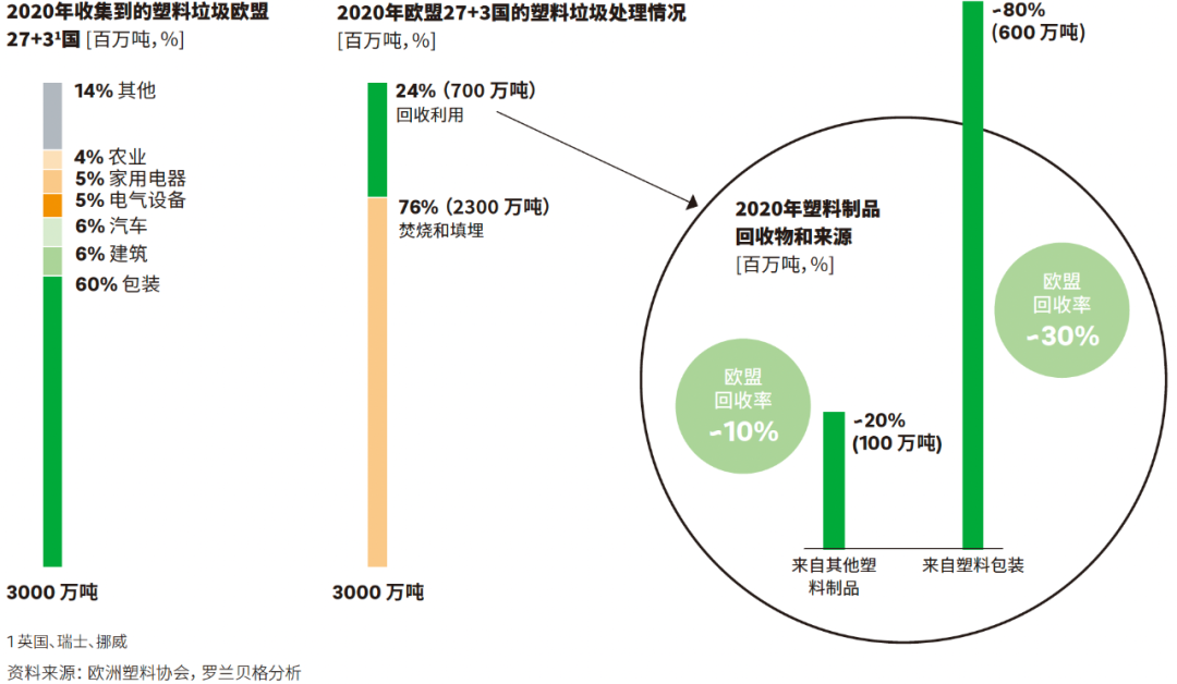图2: 2020年欧盟27+3国塑料垃圾情况
